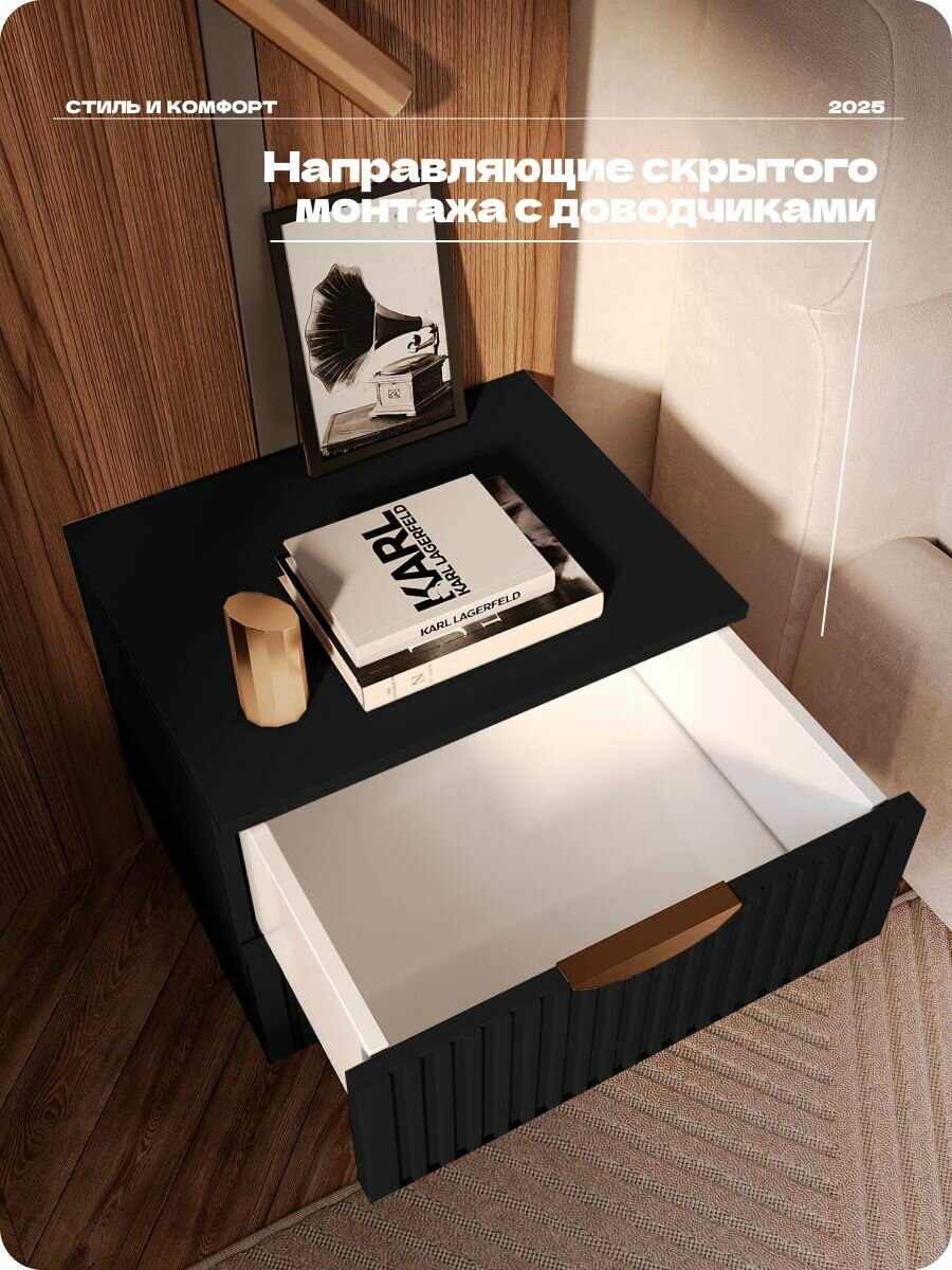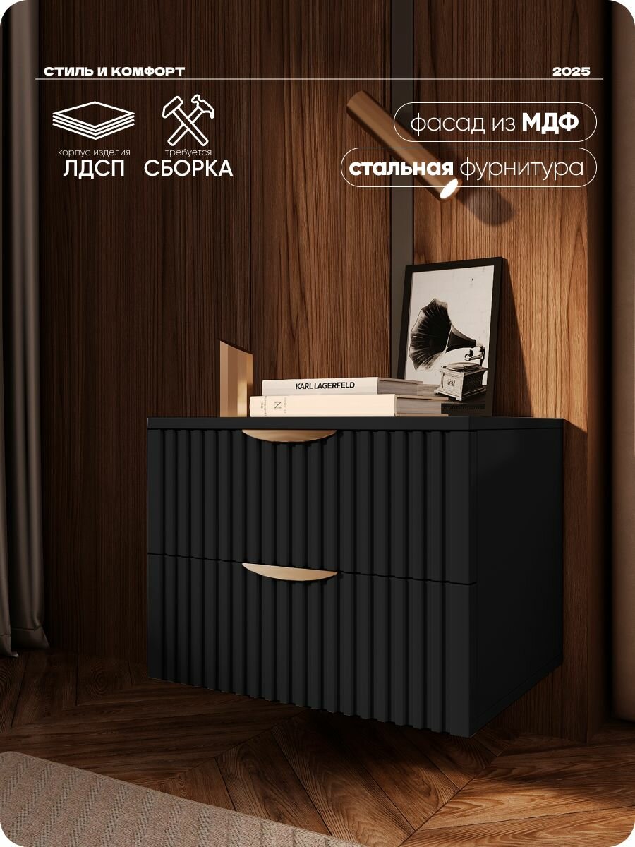 Тумба прикроватная черная с двумя ящиками из МДФ 40х40х38 см: сравнение цен, характеристики, фото, актуальное наличие и цены.
