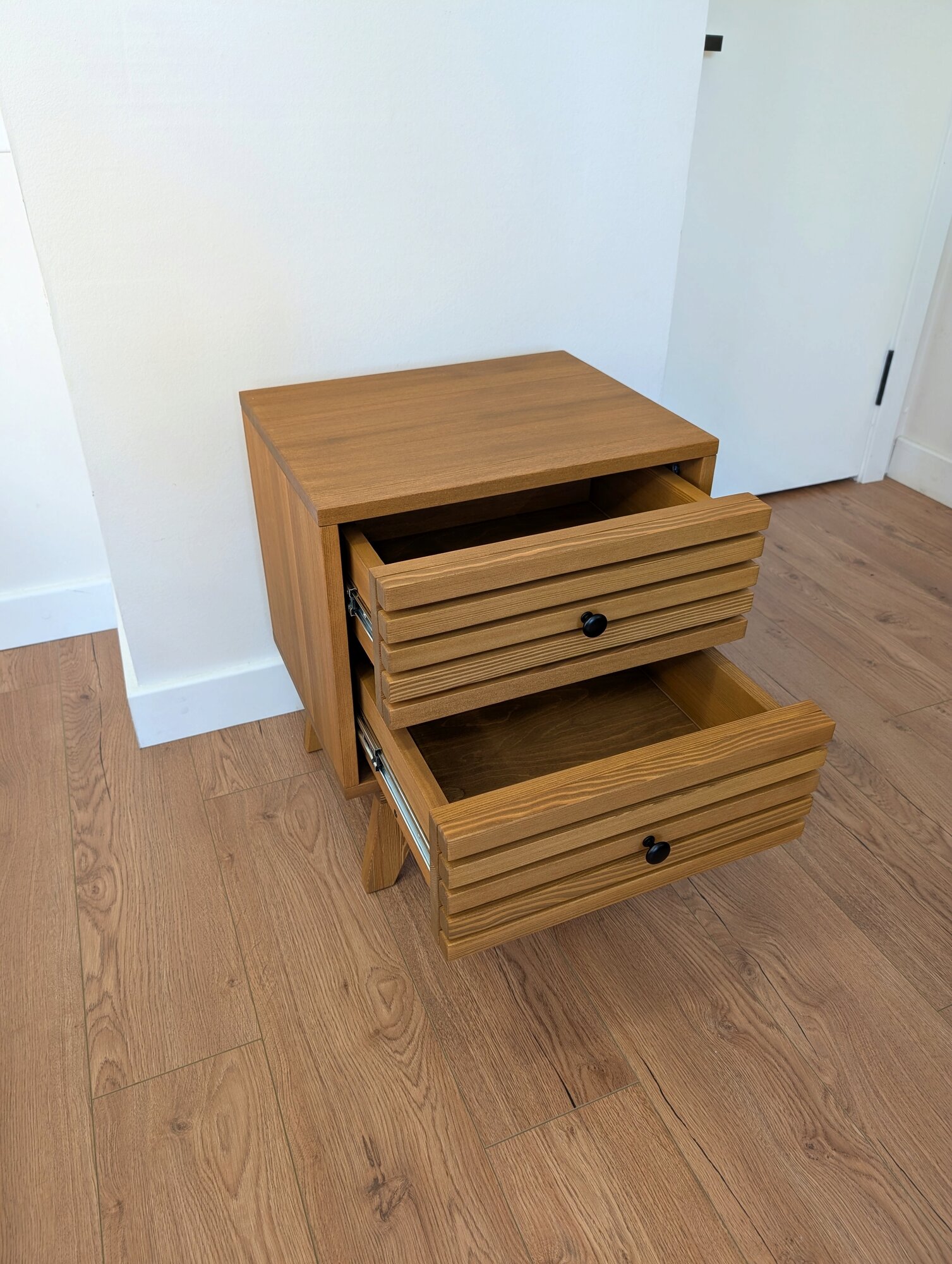 Купить Тумба прикроватная, деревянная, на ножках, 49х39х60 из массива Сибирской Лиственницы, цвет можжевельник с доставкой по всей России.