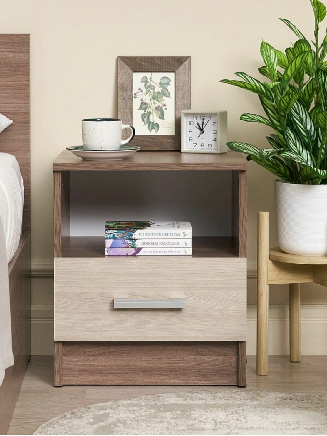 Тумба прикроватная ЭКО Ясень шимо темный/Ясень шимо светлый, ЛДСП, с ящиком , полочкой 400х468х375 ЭРА: сравнение цен, характеристики, фото, актуальное наличие и цены.
