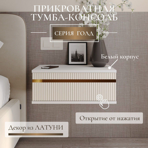Купить Тумба прикроватная «Голд» Уютная Мебель, подвесная, эмаль с декором из латуни, бежевая, с ящиком, 40,7×54,4×21,6 см с доставкой по всей России. Тумба прикроватная «Голд» Уютная Мебель, подвесная, эмаль с декором из латуни, бежевая, с ящиком, 40,7×54,4×21,6 см: сравнение цен, характеристики, фото, актуальное наличие и цены.