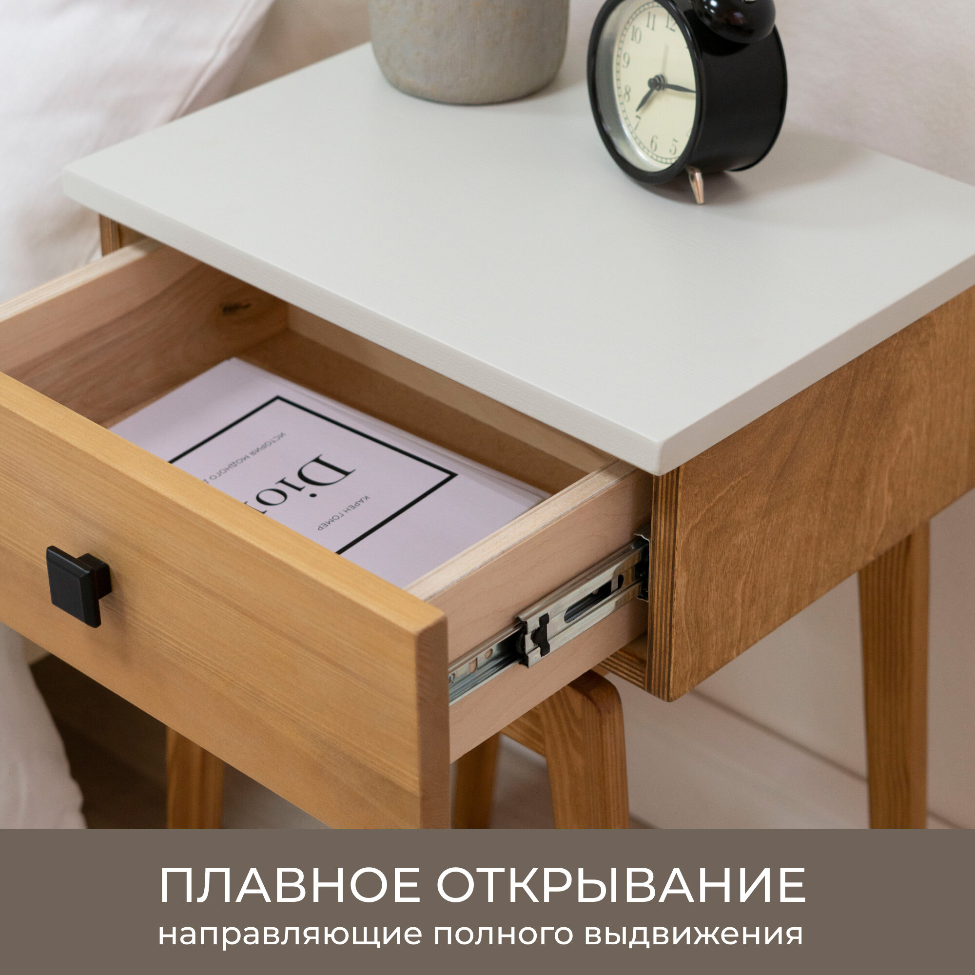 Фурнитура: установлена лаконичная черная ручка и шариковые направляющие для выдвижного ящика.