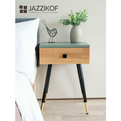 Купить Тумба прикроватная Hugo из дерева — массив сосны и дуба. Размер 30х39х55 см. Цвет натуральный, фисташка. Ручка: черная с доставкой по всей России.