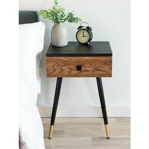 Тумба прикроватная Hugo из натурального дерева — массив сосны и дуба. Размер 30х39х55см. Цвет: орех/черный. Ручка: черная: сравнение цен, характеристики, фото, актуальное наличие и цены.