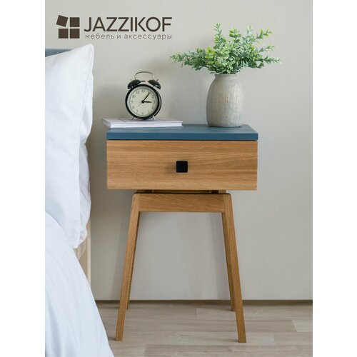 Тумба прикроватная Hugo из натурального дерева. Высота 45 см. Парящий корпус 30х39х15 см. Цвет: натуральный, синий.: сравнение цен, характеристики, фото, актуальное наличие и цены.