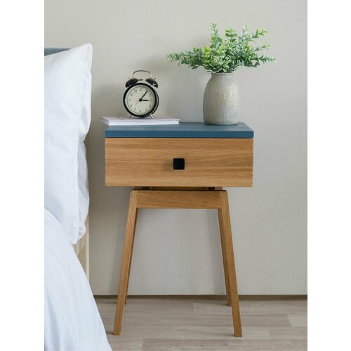 Купить Тумба прикроватная Hugo из натурального дерева. Высота 50 см. Парящий корпус 30х39х15 см. Цвет: натуральный, синий. с доставкой по всей России.