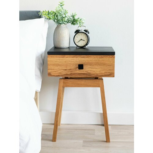 Купить Тумба прикроватная Hugo из натурального дерева. Высота 55 см. Парящий корпус 30х39х15 см. Цвет: можжевельник, черный. с доставкой по всей России.