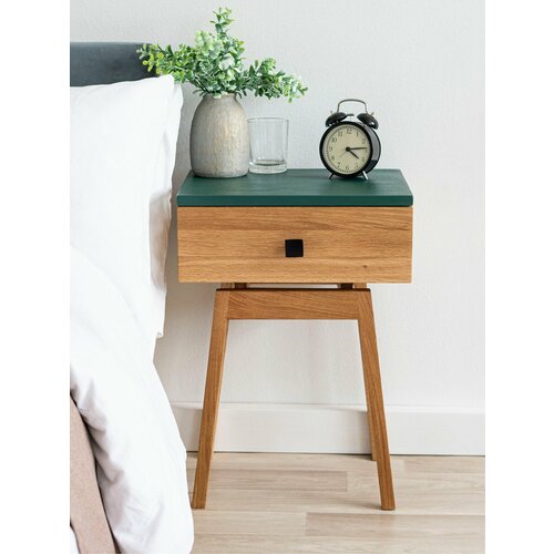 Тумба прикроватная Hugo из натурального дерева. Высота 55 см. Парящий корпус 30х39х15 см. Цвет: натуральный, зеленый.: сравнение цен, характеристики, фото, актуальное наличие и цены.