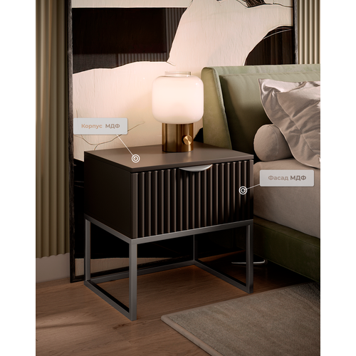 MaxForm Прикроватная тумба из МДФ 50 х 40 х 50, черная с хромированными ножками: сравнение цен, характеристики, фото, актуальное наличие и цены.