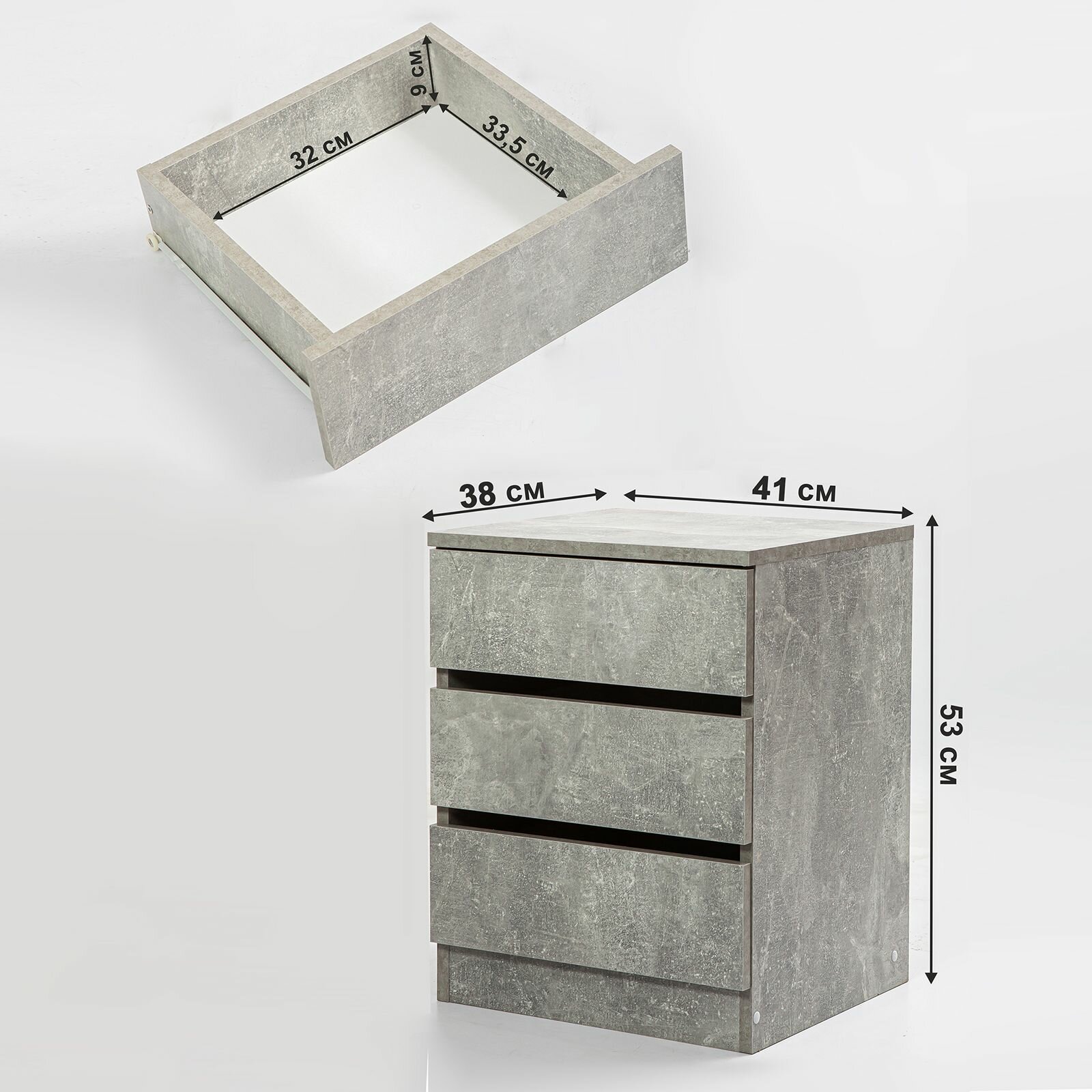 Тумба прикроватная Letta «Индиго», ЛДСП, 3 выдвижных ящика, цвет бетон, 41 см x 38 см x 53 см: сравнение цен, характеристики, фото, актуальное наличие и цены.