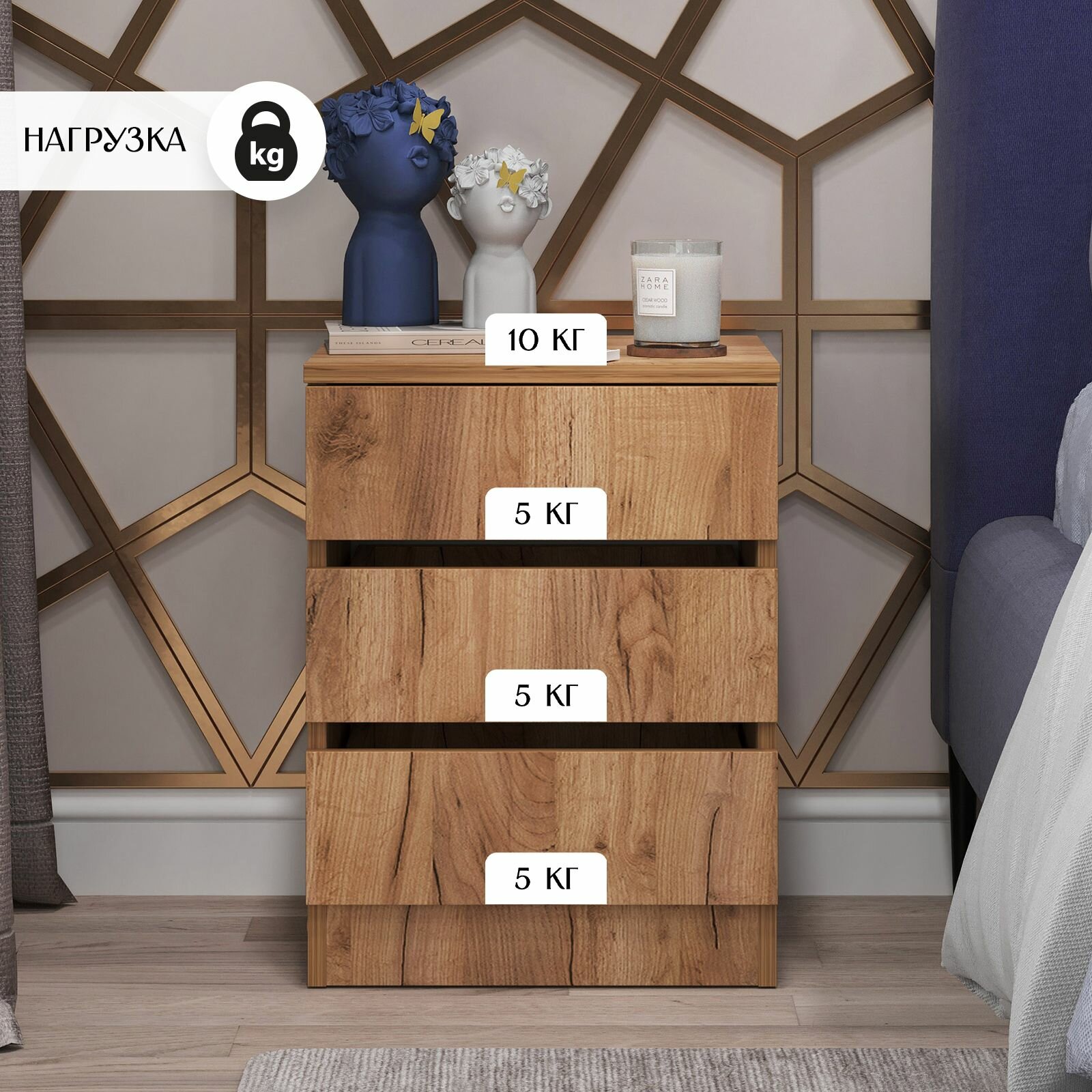 Тумба оснащена тремя ящиками, расположенными в трех секциях, что позволяет разделить и организовать хранение по вашему усмотрению. Роликовые направляющие обеспечивают легкость открывания и закрывания ящиков, делая использование тумбы максимально удобным. Тип отделений – ящик, что идеально подходит для хранения одежды, постельных принадлежностей или аксессуаров.