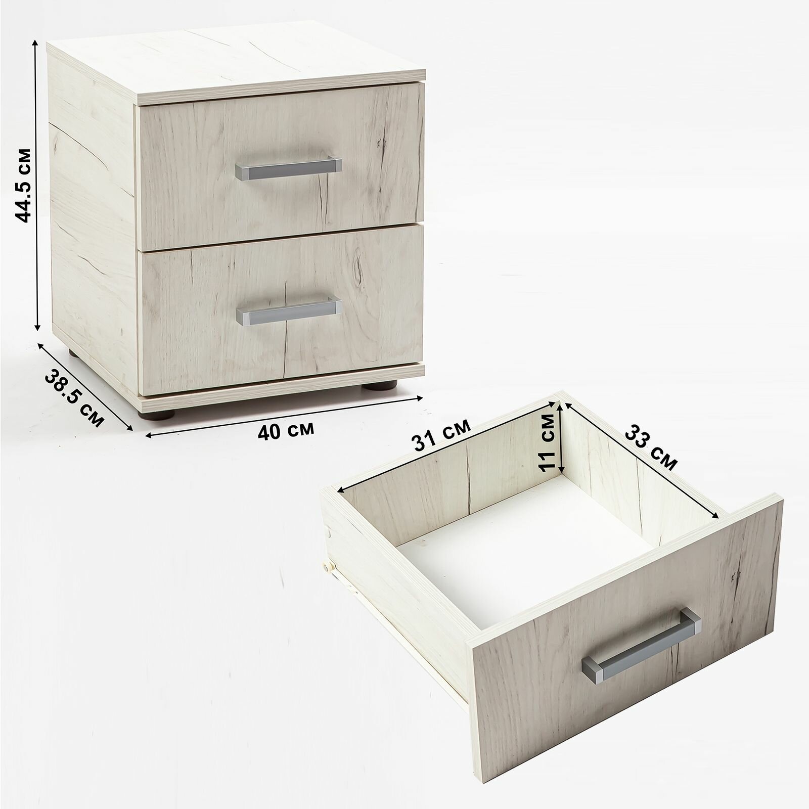 Тумба 2 ящика - удобная и надежная тумба для вашего современного интерьера. Купить тумбу прикроватную вы сможете и в качестве тумбочки в прихожую, или дополнить тумбой письменный стол в рабочем кабинете. Так же она найдет свое применение в спальне, детской или офисе. В ней вы можете хранить документы, нужные вещи, в прихожей - обувь и аксессуары, в детской - игрушки и книги. Разместите на тумбу ночник в спальне, в гостиной предметы декора и вазы с цветами. Компактная прикроватная тумба с двумя выдвижными ящиками. Упакован товар с применением сотового картона, благодаря чему углы и грани изделий дополнительно защищены. Собрать тумбу легко в домашних условиях: для этого вам не потребуются специальные инструменты - хватит вашей отвертки и нашего шестигранника, который идет в комплекте. Также к набору прилагается подробная инструкция по сборке.