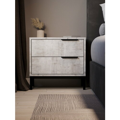 Тумба прикроватная в стиле Лофт стильная и простая, прекрасно дополнит любой интерьер. Качественное ЛДСП модных оттенков и фурнитура из металла отлично впишутся в стилистическое оформление помещения. Тумба оснащена двумя выдвижными ящиками на бесшумных шариковых направляющих и металлической опорой с пластиковым подпятником. Металлическая профильная ручка с возможностью крепления с любой стороны, обеспечит легкость и удобство пользования ящиками. Тумба представлена в 7 цветах, благодаря чему ее можно подобрать под любой вкус и интерьер.