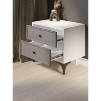 Тумба прикроватная - необходимая деталь для любой спальной комнаты. Она является удобной и функциональной, позволяет расположить необходимые вам вещи на расстоянии вытянутой руки. Стильная, лаконичная тумбочка без всяких излишеств декора - универсальный вариант для любого интерьера. Тумба прикроватная компактна и позволяет сэкономить пространство, может заменить и туалетный столик. Корпус выполнен из ЛДСП класса Е1, фасад из МДФ с современным видом фрезеровки в пленке ПВХ. Тумба имеет 2 выдвижных ящика на бесшумных шариковых направляющих полного выдвижения, стильные черные металлические ручки, пластиковую черную опору с лицевой стороны и цоколь из ЛДСП с задней стороны.