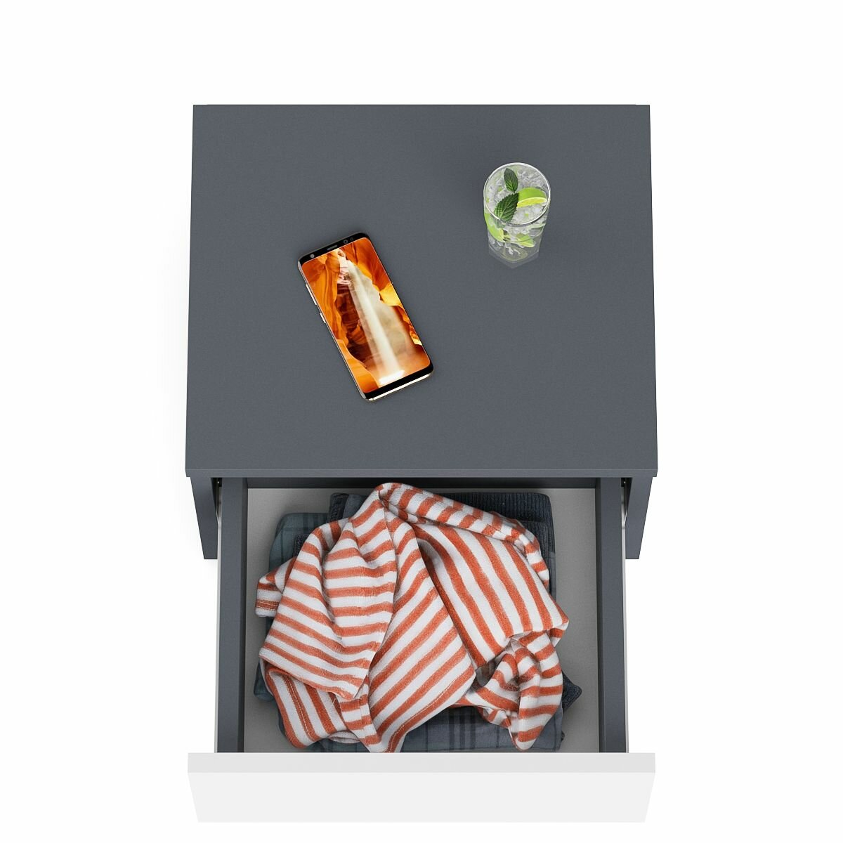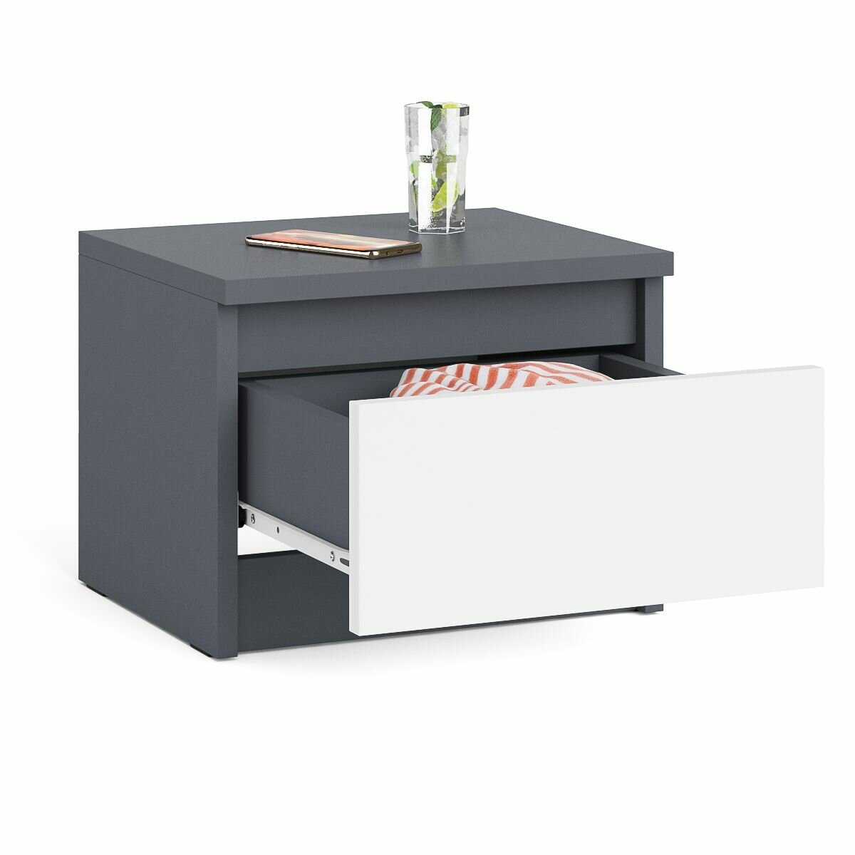 Тумба прикроватная Мори ТПМ400.1 цвет графит/белый, ШхГхВ 40,4х34,6х30 см