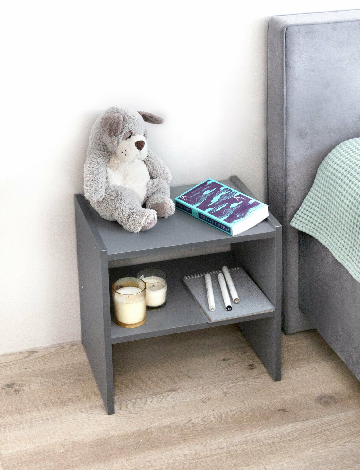 Эта прикроватная тумба темно-серого цвета графит идеально подходит для компактного размещения рядом с кроватью, предлагая место для хранения необходимых вещей или украшений. Эта мебель функциональна и удобна, имеет достаточно пространства для лампы, книг, будильника или других мелочей, которые вы хотите держать под рукой.