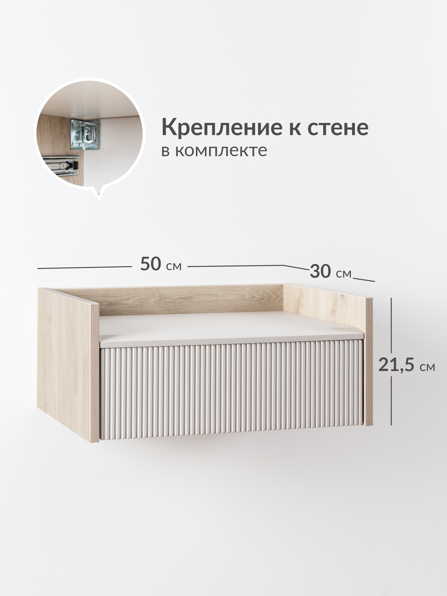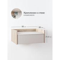 Тумба прикроватная подвесная бежевая 50 х 30 х 21,5см, Наоми 16.11.01, Дуб Белый exclusive, Моно керамика: сравнение цен, характеристики, фото, актуальное наличие и цены.