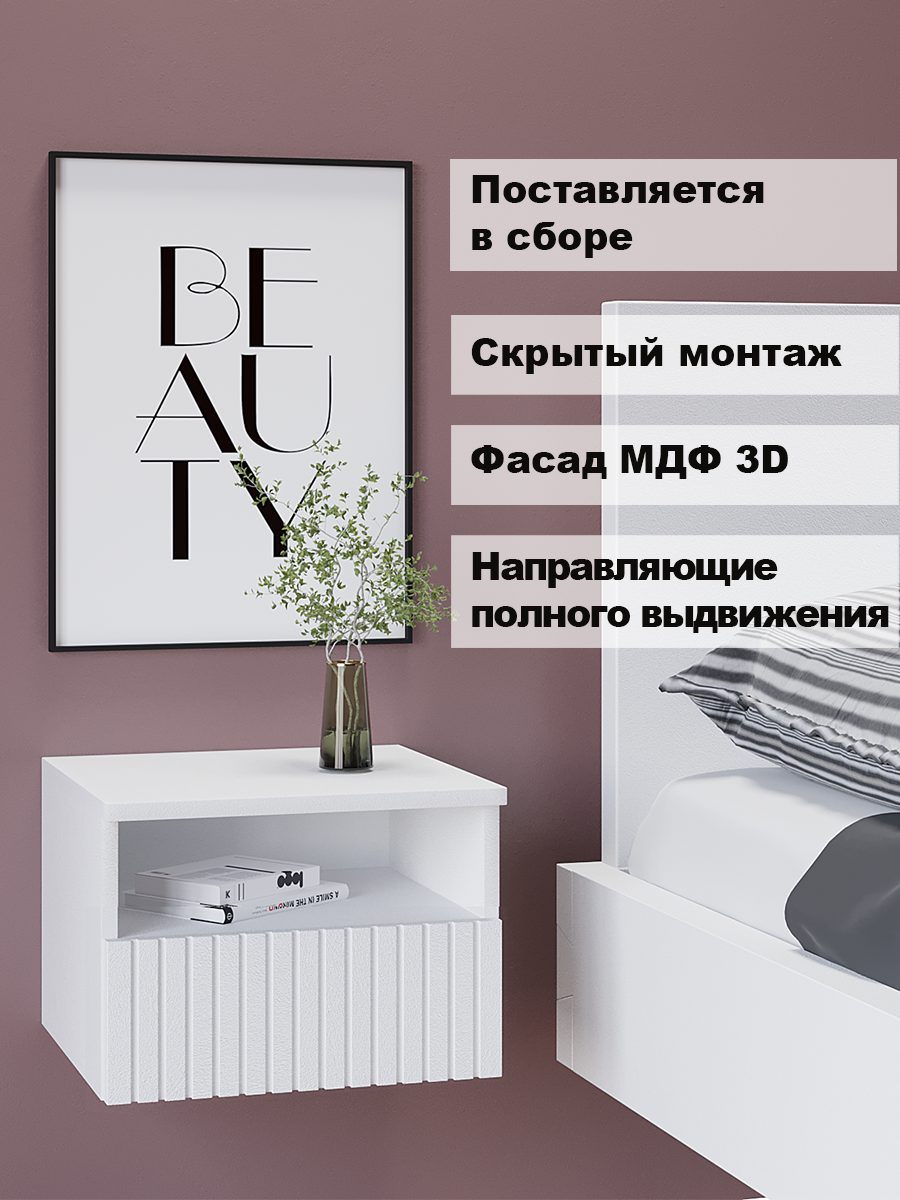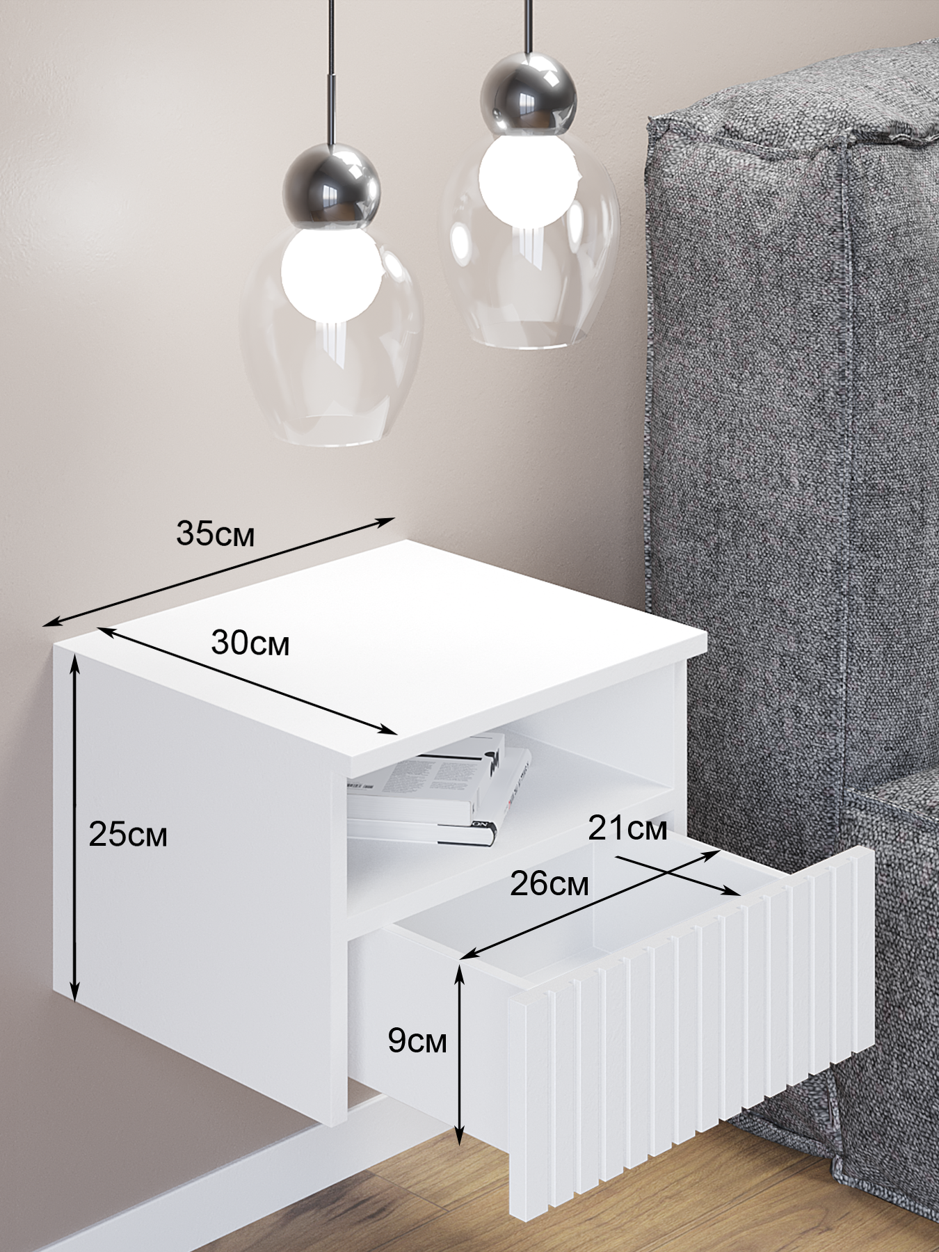 Тумба прикроватная подвесная Кросс, 35см х 30см х25см, Белый: сравнение цен, характеристики, фото, актуальное наличие и цены.