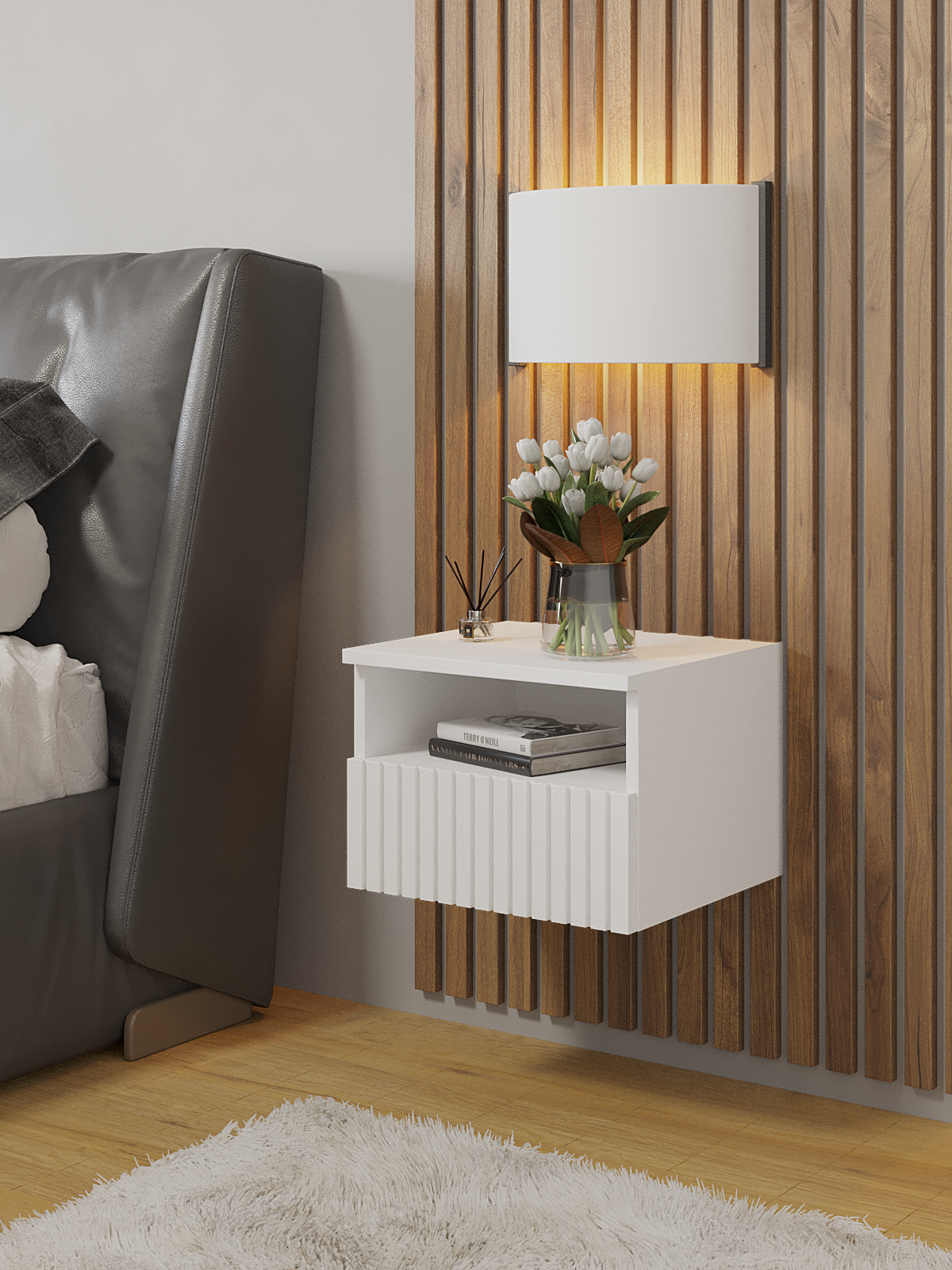 Тумба прикроватная подвесная Кросс, 35см х 30см х25см, Белый
