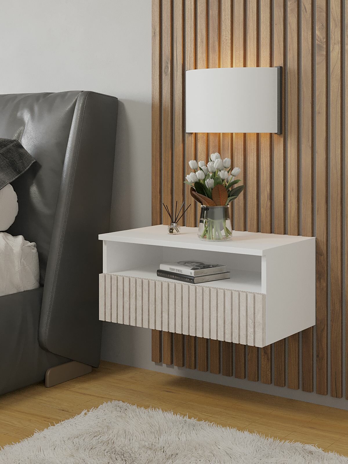 Тумба прикроватная подвесная Кросс, 52см х 30см х25см, Белый/Верона