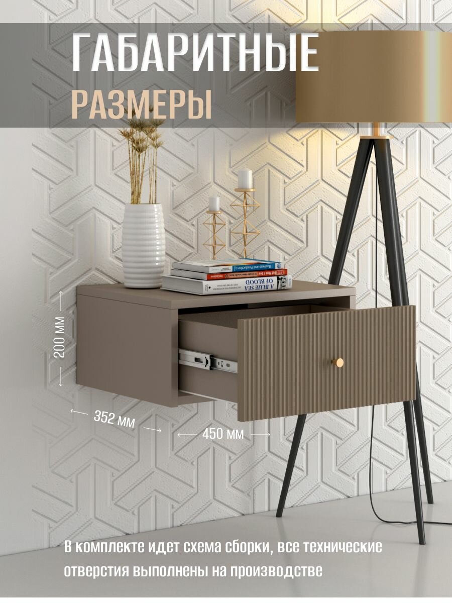 Тумба прикроватная подвесная Лайт, ФМ Династия, 45х35х20см Глиняно Серый/Холст Латте: сравнение цен, характеристики, фото, актуальное наличие и цены.