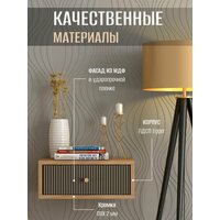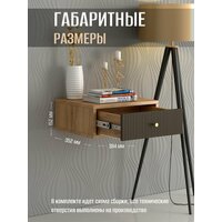 Тумба имеет одну выдвижную ящичную секцию и открытую полочку, что позволяет удобно организовать хранение различных предметов. Выдвижной ящик оснащен металлическими направляющими, что обеспечивает легкое и плавное открывание и закрывание.