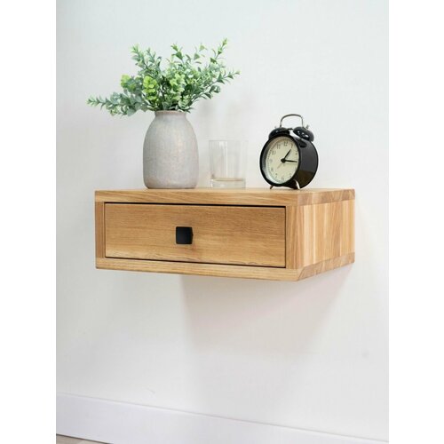 Купить Тумба прикроватная подвесная Rubi из натурального дерева — дуб. Размер 30х39х14 см. Цвет: натуральный дуб. Ручка: черная с доставкой по всей России.