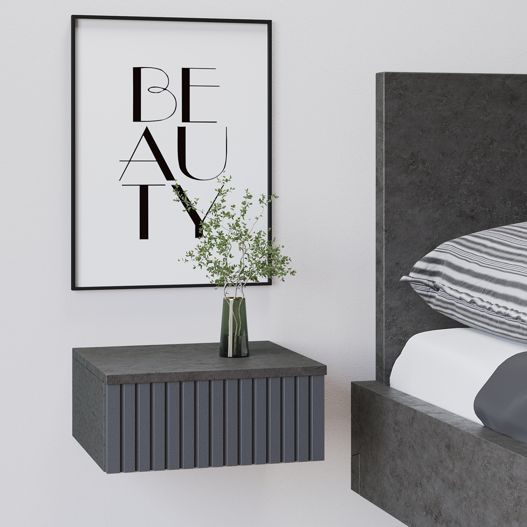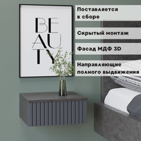 Подвесная прикроватная тумбочка в стильном и элегантном дизайне украсит интерьер Вашего дома и станет функциональным предметом мебели в гостиной, спальне, прихожей, на кухне или детской комнате. Навесная тумба изготовлена из высококачественного и экологически чистого ЛДСП с отделкой МДФ и покрыта защитным покрытием от царапин Soft touch. Оснащена вместительным ящиком, с бесшумными металлическими направляющими и надежной подвесной системой с креплением к стене. Тумбочку можно использовать как в спальне как прикроватный стол, так и как тумбу в прихожую или коридор, а в сочетании с зеркалом как туалетный стол, столик на балкон, в ванную или консоль. Навесная тумба не занимает много места и экономит пространство. Детальная и понятная инструкция по монтажу, а также фабричная сборка и крепления, прилагающаяся в комплекте, делают процесс установки легким и быстрым. Превосходный подарок на Новоселье.