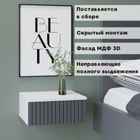 Подвесная прикроватная тумбочка в стильном и элегантном дизайне украсит интерьер Вашего дома и станет функциональным предметом мебели в гостиной, спальне, прихожей, на кухне или детской комнате. Навесная тумба изготовлена из высококачественного и экологически чистого ЛДСП с отделкой МДФ и покрыта защитным покрытием от царапин Soft touch. Оснащена вместительным ящиком, с бесшумными металлическими направляющими и надежной подвесной системой с креплением к стене. Тумбочку можно использовать как в спальне как прикроватный стол, так и как тумбу в прихожую или коридор, а в сочетании с зеркалом как туалетный стол, столик на балкон, в ванную или консоль. Навесная тумба не занимает много места и экономит пространство. Детальная и понятная инструкция по монтажу, а также фабричная сборка и крепления, прилагающаяся в комплекте, делают процесс установки легким и быстрым. Превосходный подарок на Новоселье.