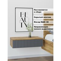 Купить Тумба прикроватная подвесная Стелла, 52см х 30см х15см, Вотан/Графит с доставкой по всей России.