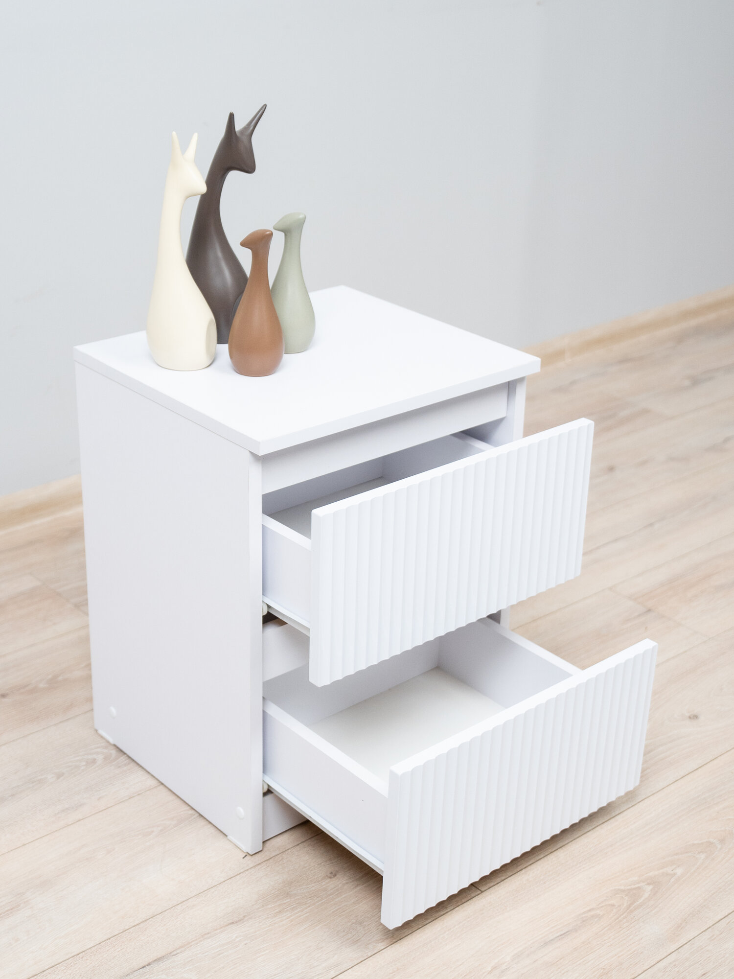 Тумба прикроватная белая узкая с ящиками и матовыми фасадами 3d волна станет идеальным дополнением вашей спальни, прихожей, коридора или офиса. Оснащена 2 ящиками на роликовых направляющих полного выдвижения. Компактная прикроватная тумба с ящиками, несмотря на свое малогабаритное исполнение, является одним из обязательных элементов мебели в спальне. Узкая функциональная тумбочка для любой комнаты (спальни, прихожей, гостиной, детской, коридора, прихожей, кухни ) станет неотъемлемой частью вашего дома, так как вместительные ящики позволят хранить в них книги, косметику и другие ценные и дорогие для Вас мелочи. Тумба офисная подчеркнет индивидуальность интерьера, а также послужит функциональным местом для хранения документов в рабочем кабинете. Данная консоль с ящиками - это удобное дополнение к письменному или компьютерному столу. Отлично служит в качестве прикроватного ночного столика, небольшого комода для одежды, журнального столика. Можно использовать в офисе, квартире, гараже, даче, балконе. В комплекте идет подробная инструкция по сборке, высококачественная фурнитура. Мебель выполнена в классическом стиле из безопасного ЛДСП 16 мм. Впишется в любой интерьер.