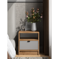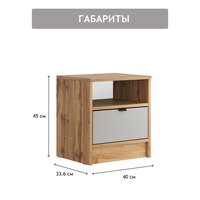 Каркас сделан из безопасного ЛДСП 16 мм, цвет Дуб Вотан, фасад ящика серого цвета "Мартини". Ручка - профиль черного цвета. Ящики на роликовых направляющих полного выдвижения. В комплекте идет качественная мебельная фурнитура, а легкая пошаговая инструкция гарантирует удобную самостоятельную сборку.