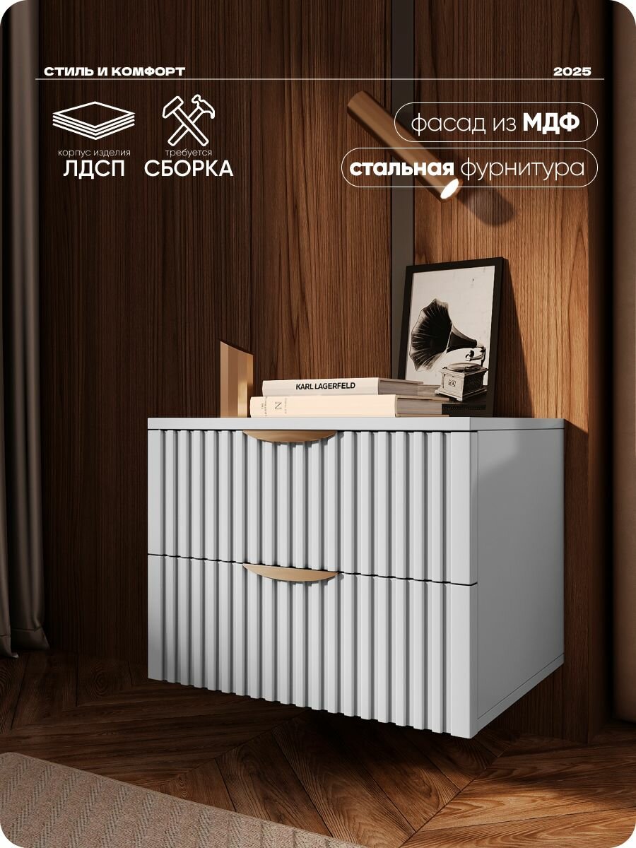 Тумба прикроватная серая с двумя ящиками из ЛДСП/МДФ 40х40х38 см: сравнение цен, характеристики, фото, актуальное наличие и цены.