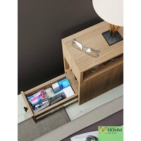 Прикроватная тумба оснащена открытой полкой, что добавляет удобства в использовании.