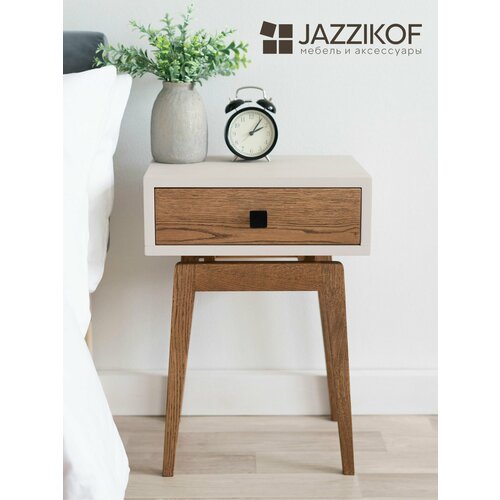 Купить Тумба прикроватная Zolo из натурального дерева — сосна и дуб. Размер 30х39х55см. Цвет: льняной/орех. Ручка: черная с доставкой по всей России.