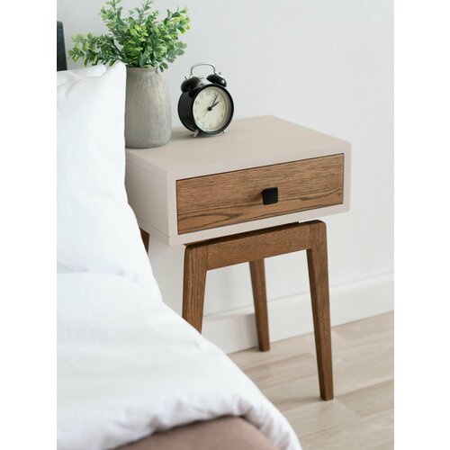Купить Тумба прикроватная Zolo из натурального дерева — сосна и дуб. Размер 30х39х60см. Цвет: льняной/орех. Ручка: черная с доставкой по всей России.