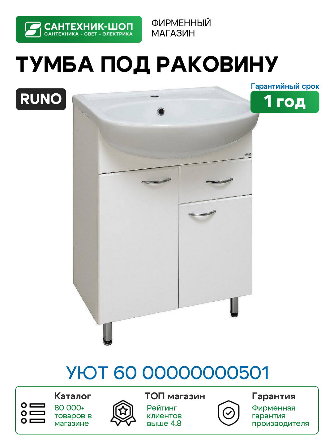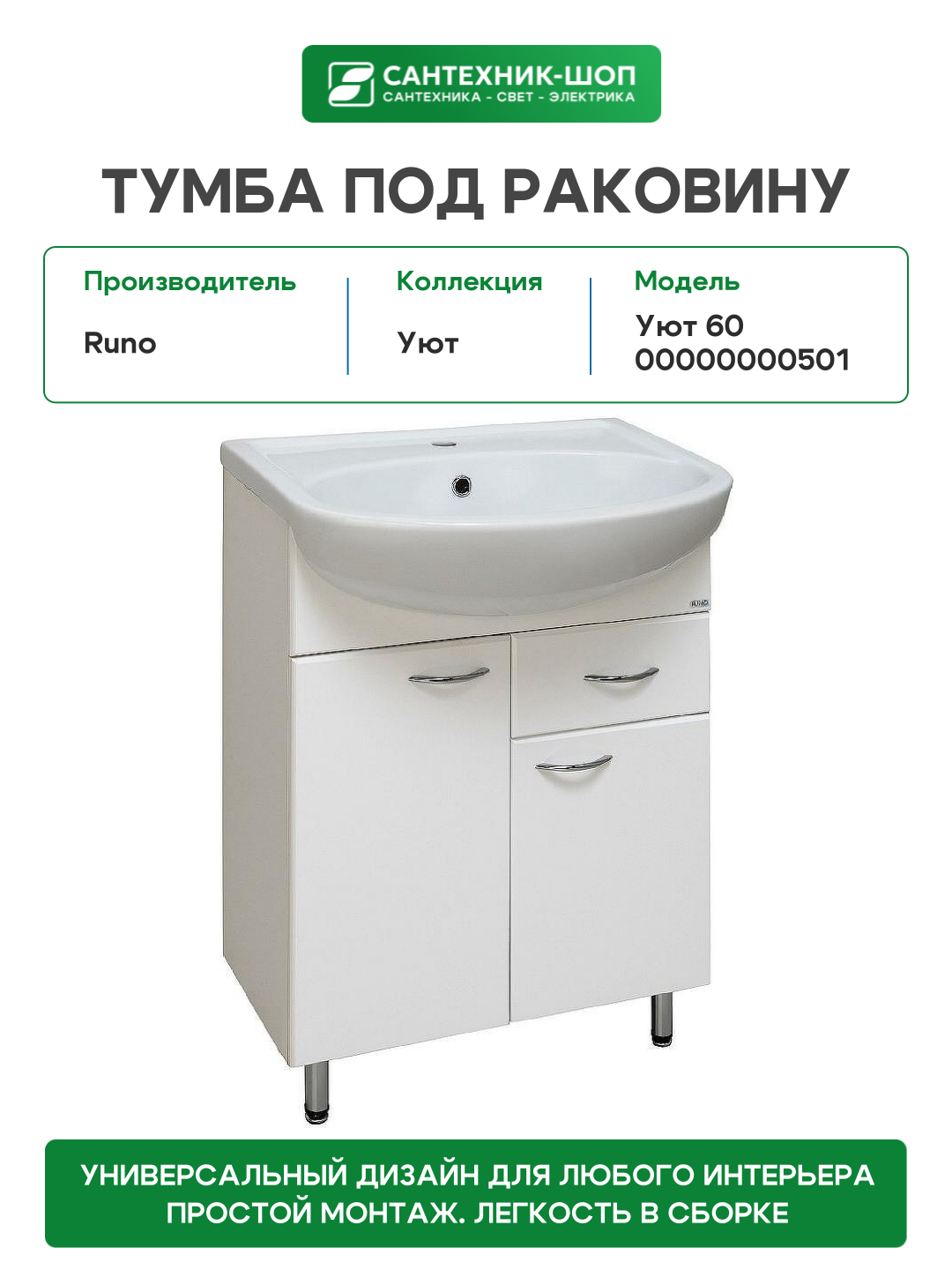 Купить Тумба под раковину Runo Уют 60 00000000501 Белая МДФ / ЛДСП с доставкой по всей России. Тумба под раковину Runo Уют 60 00000000501 Белая МДФ / ЛДСП: сравнение цен, характеристики, фото, актуальное наличие и цены.