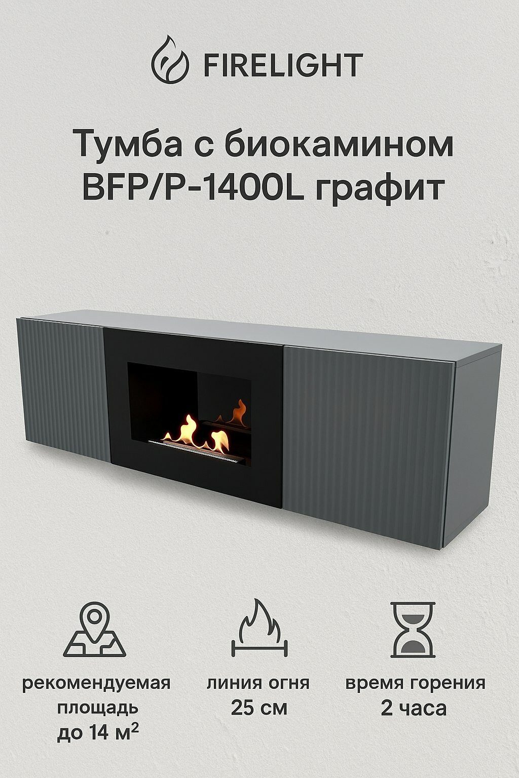 Тумба с биокамином Firelight BFP/P-1400L графит: сравнение цен, характеристики, фото, актуальное наличие и цены.