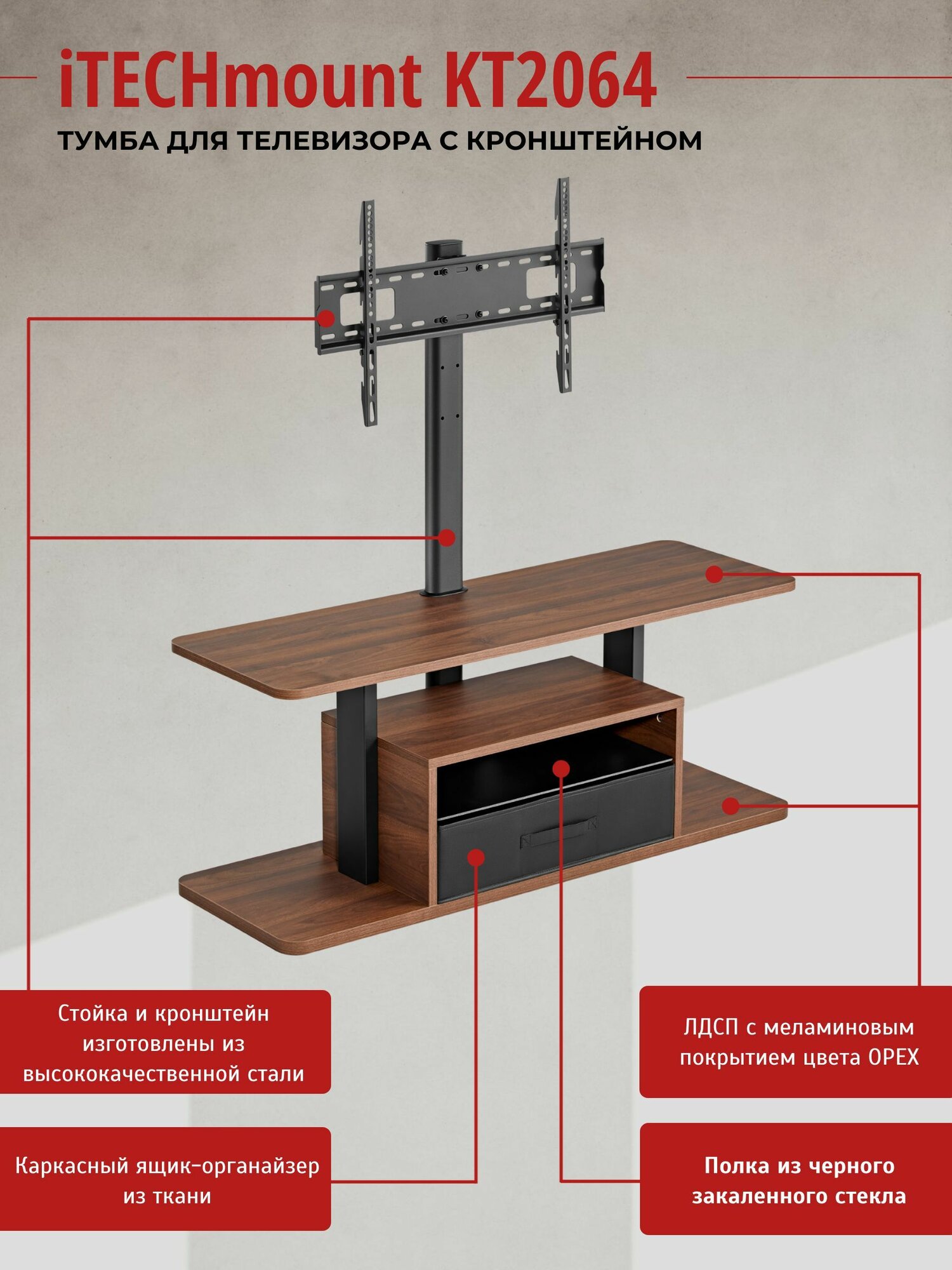 Тумба с поворотным кронштейном для телевизора iTECHmount KT2064: сравнение цен, характеристики, фото, актуальное наличие и цены.