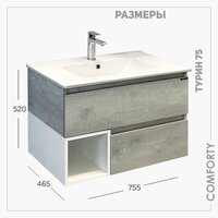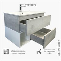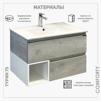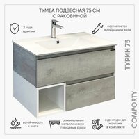 Тумба с раковиной 75 см для ванной подвесная Comforty Турин-75М дуб белый: сравнение цен, характеристики, фото, актуальное наличие и цены.