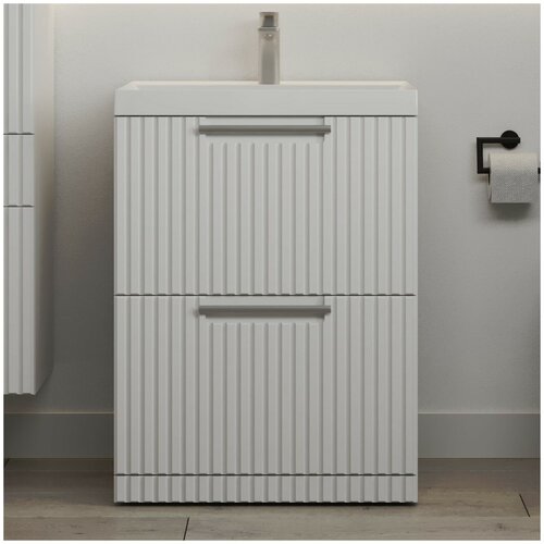 Комплект тумба с раковиной аквакрафт Bella для ванной комнаты, напольная 60 с раковиной из литьевого мрамора - современная мебель, которая соответствует главным стандартам: экологичность, надёжность, стиль и комфорт. Наша фабрика имеет особые секреты производства, благодаря чему изделия обладают уникальностью и с легкостью впишутся в Ваш интерьер. Глубокая вертикальная фрезеровка фасадов придает уникальность тумбе и создает объем, что является очень интересным дизайнерским решением. Боковые стороны корпуса и фасад изготовлены из МДФ "Egger" 19 мм и покрыты пленкой PVC немецких производителей увеличенной толщины, цвет белый матовый Soft-touch(обладает приятным тактильным эффектом при касании и смотрится очень круто!). Уникальная эргономическая форма ручки и вырез под руку, разработанная совместно с итальянскими дизайнерами, даёт больше удобства использования. На наши тумбы мы ставим фурнитуру премиум класса немецких производителей. Направляющие для ящиков используются скрытого монтажа, полного выдвижения, с доводчиками для плавного закрывания и полным контролем для регулировки фасада по трем плоскостям. Кол-во рабочих циклов 60000! Тумба имеет регулируемые подставки, которые позволят выставить по уровню. Внутренние стенки и дно ящиков изготовлены из белого лдсп 16 мм, которое выдерживает нагрузку до 10кг. Верхний ящик имеет не пластиковую вставку, а полноценный органайзер из лдсп и вырез под сифон. Основные характеристики Тумбы: ширина 60 см, глубина 45см, высота 77см, вес без раковины 29 кг. В изготовлении нашей мебели используется мдф и лдсп производителя премиум-класса "Еgger"- это материал австрийской компании с германским качеством производства: прочный, надежный, долговечный, устойчивый к перепадам температур и влажности воздуха, а также удовлетворяющий всем требованиям экологической безопасности. В комплект входит раковина из литьевого мрамора, которая обладает отличными характеристиками прочности и белоснежный цвет, который Модельный ряд включает в себя размеры от 60 до 100см шириной, кратностью 10см.