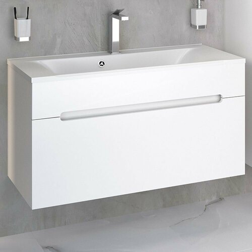 Функциональность и удобство: - Просторный выдвижной ящик на надёжных шариковых направляющих скрытого монтажа оснащён системой плавного и бесшумного закрывания с доводчиком. - Эргономичный вырез на фасаде заменяет традиционные ручки, делая открытие лёгким и удобным. - Подвесная конструкция визуально облегчает интерьер и упрощает уборку в ванной комнате.