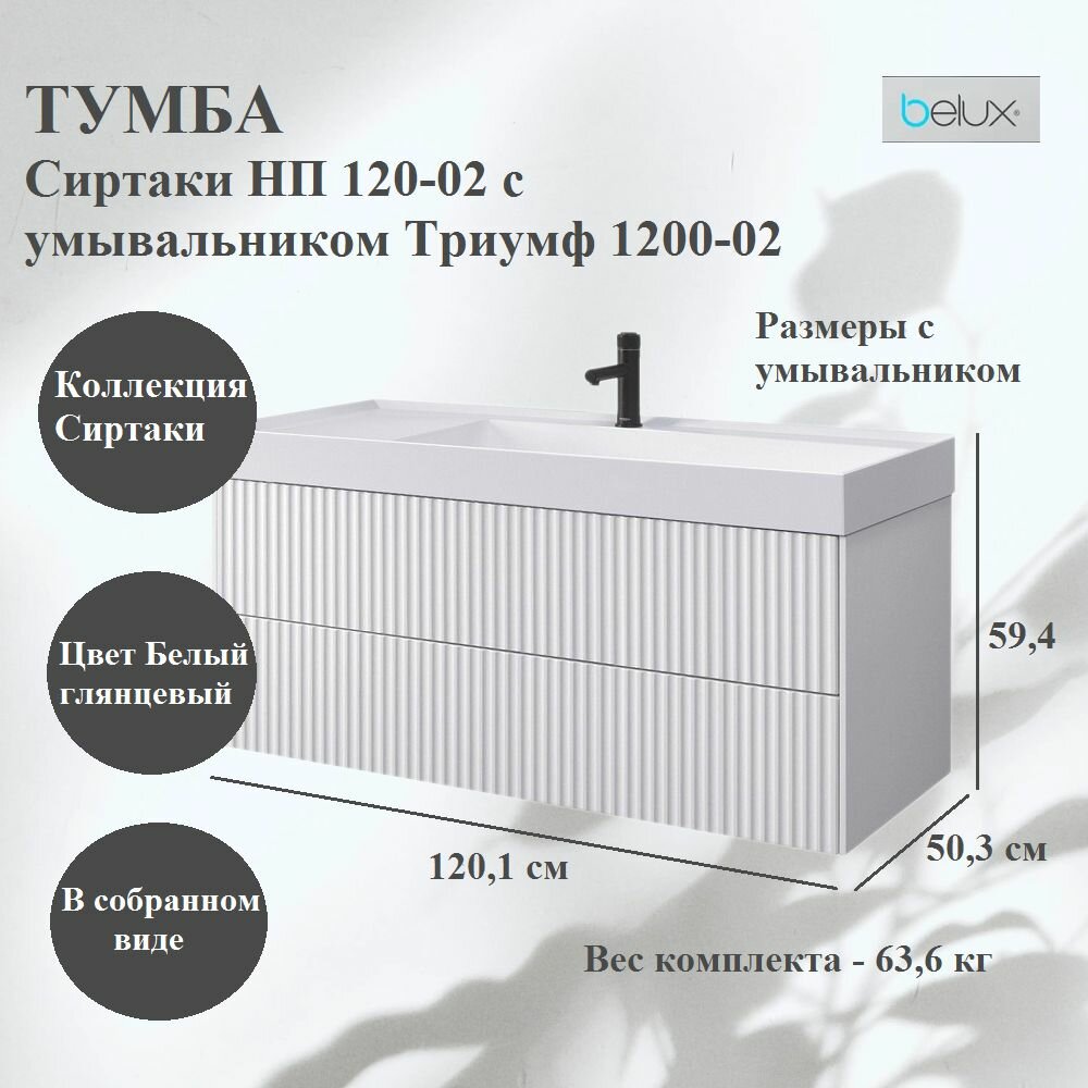 Купить Тумба с раковиной Belux Сиртаки 120, Белый матовый (18) левый с доставкой по всей России.