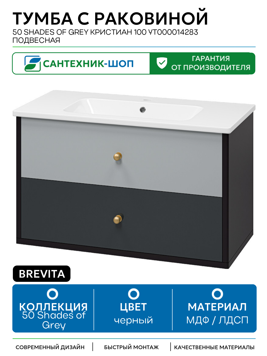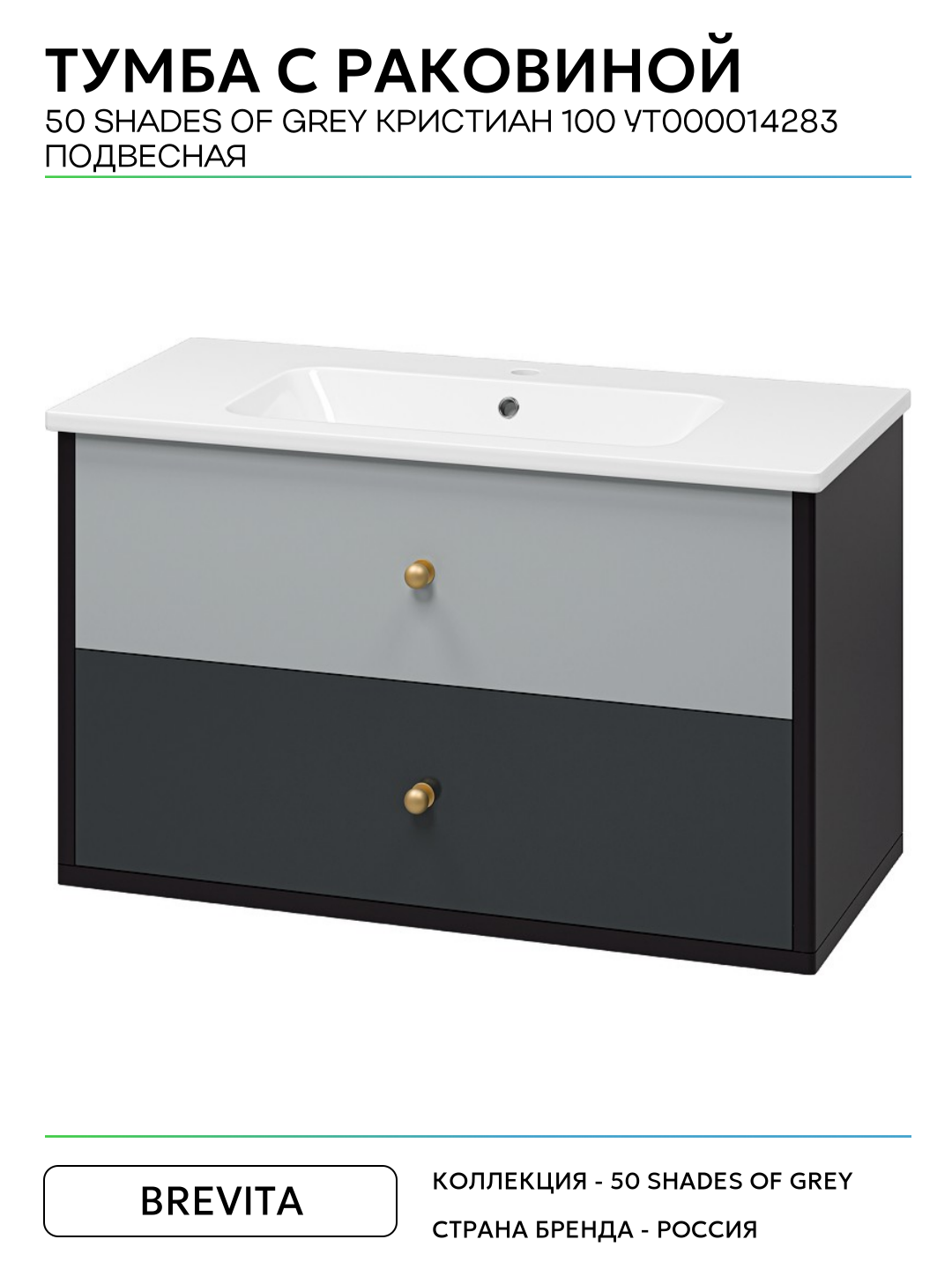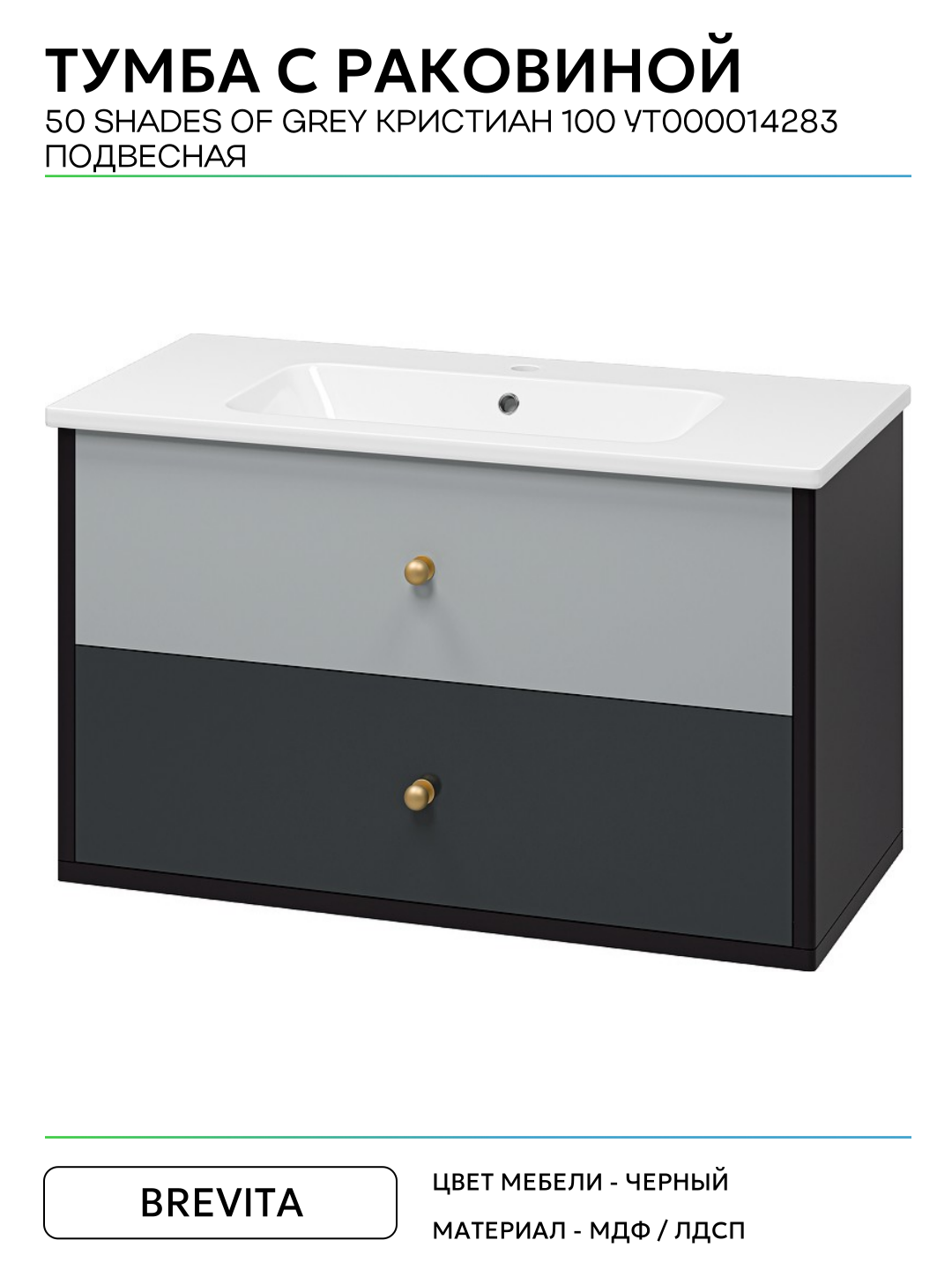 Тумба с раковиной Brevita 50 Shades of Grey Кристиан 100 УТ000014283 подвесная Черная матовая Серая матовая МДФ / ЛДСП черный с ящиками Россия: сравнение цен, характеристики, фото, актуальное наличие и цены.