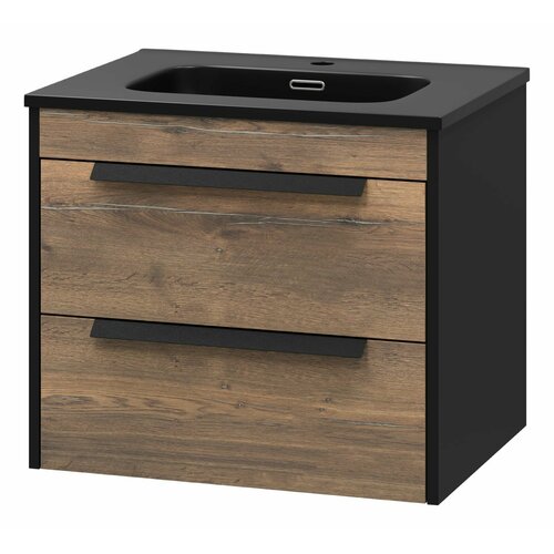 Купить Тумба с раковиной Brevita Monsour 60 УТ000015277 подвесная Дуб Галифакс олово Черный кварц МДФ / ЛДСП черный с ящиками Россия с доставкой по всей России.