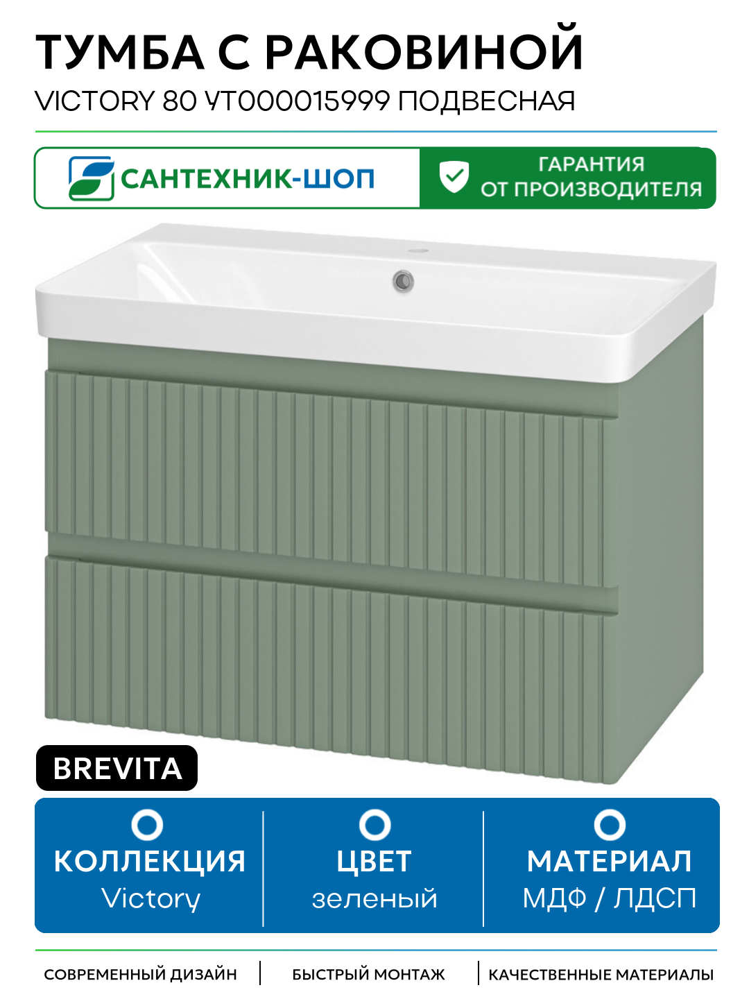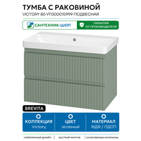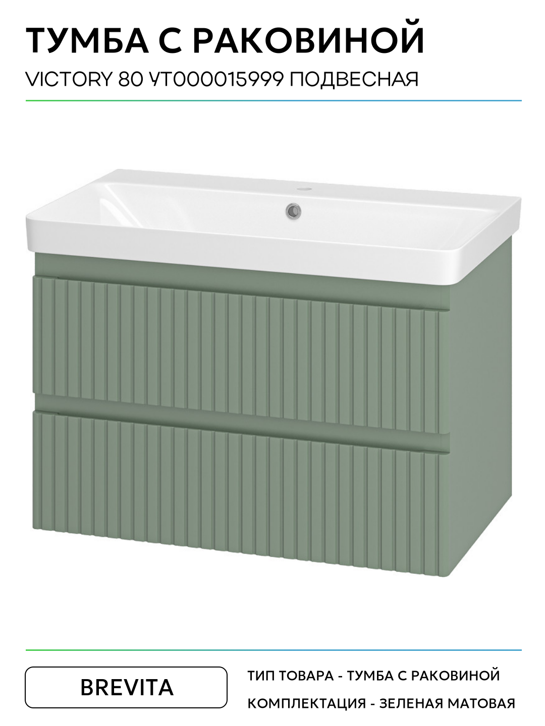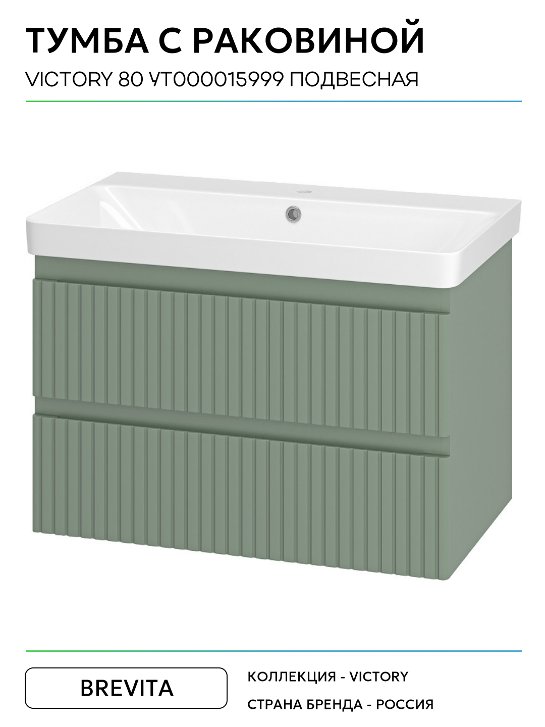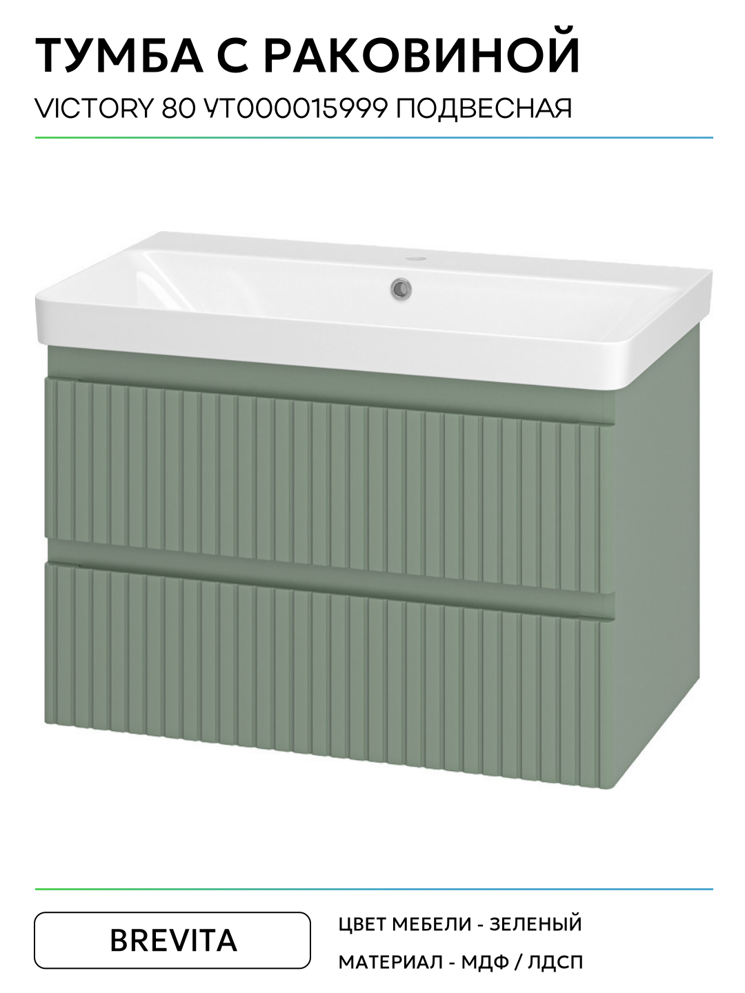 Тумба с раковиной Brevita Victory 80 УТ000015999 подвесная Зеленая матовая МДФ / ЛДСП зеленый с ящиками Россия: сравнение цен, характеристики, фото, актуальное наличие и цены.