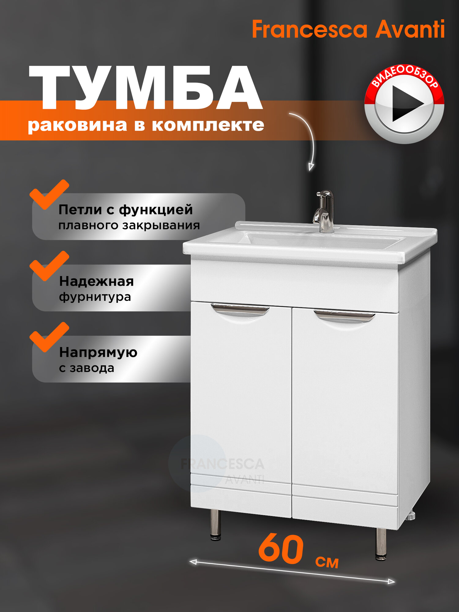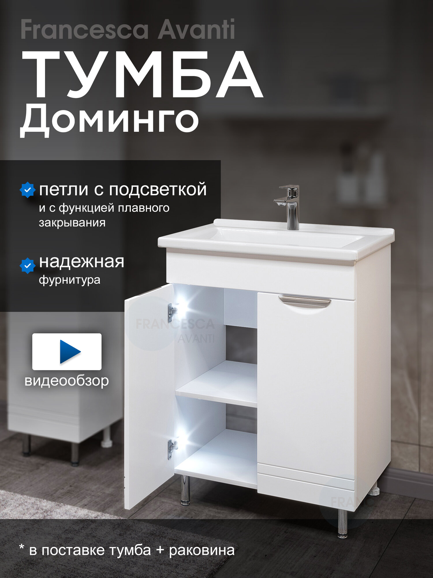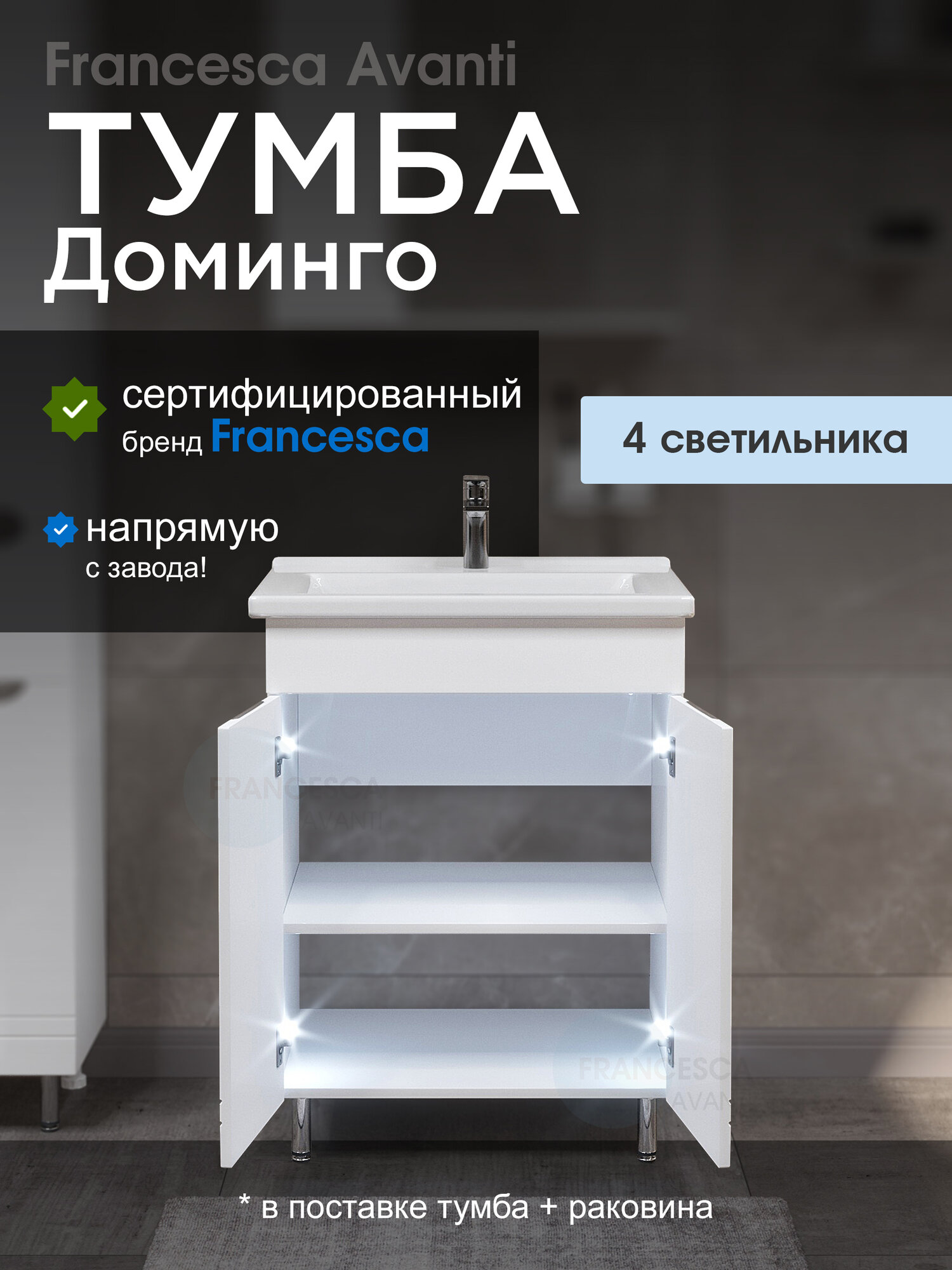 Тумба с раковиной для ванной Доминго 60 белый, с подсветкой (2дв. ум. Миранда 60): сравнение цен, характеристики, фото, актуальное наличие и цены.