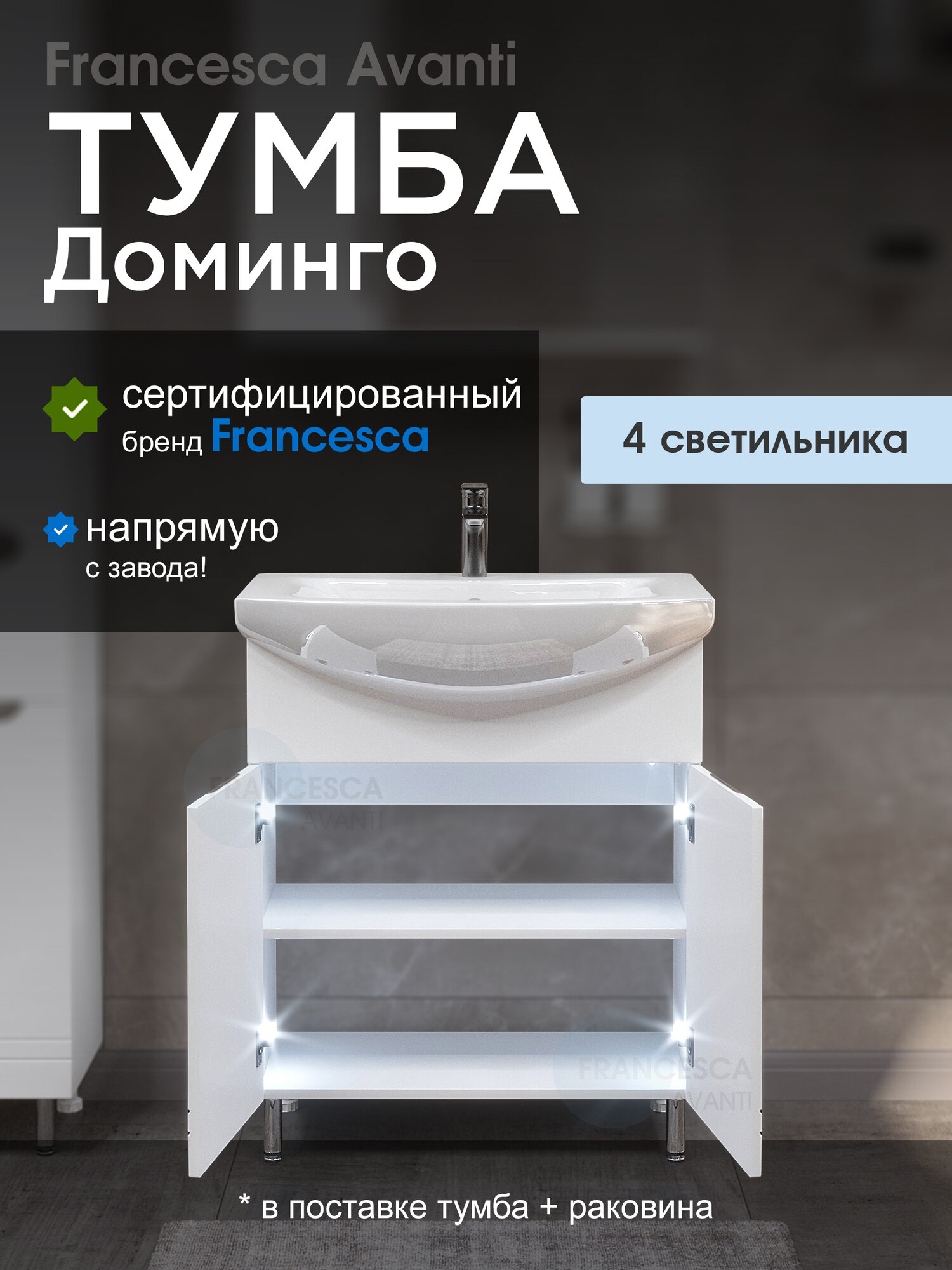 Тумба с раковиной для ванной Доминго 70 белый, с подсветкой (2дв. ум. Балтика 70): сравнение цен, характеристики, фото, актуальное наличие и цены.