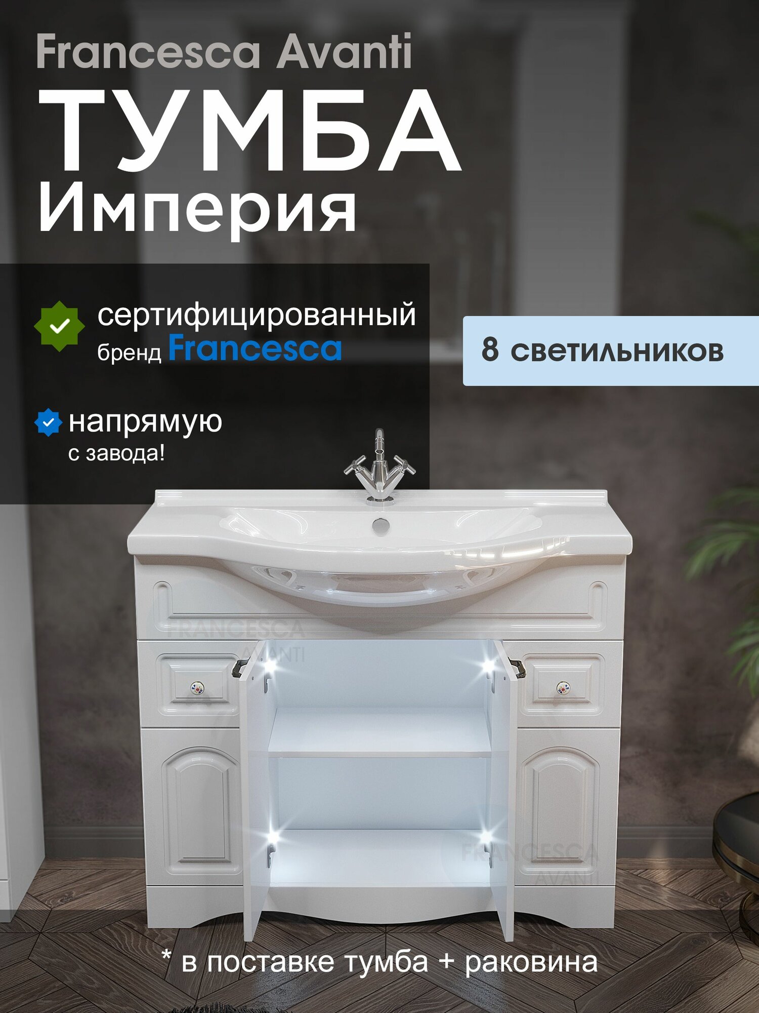 Купить Тумба с раковиной для ванной Империя 100-2 белый с подсветкой (2ящ+4 дв, ум. Эльбрус 100) с доставкой по всей России.