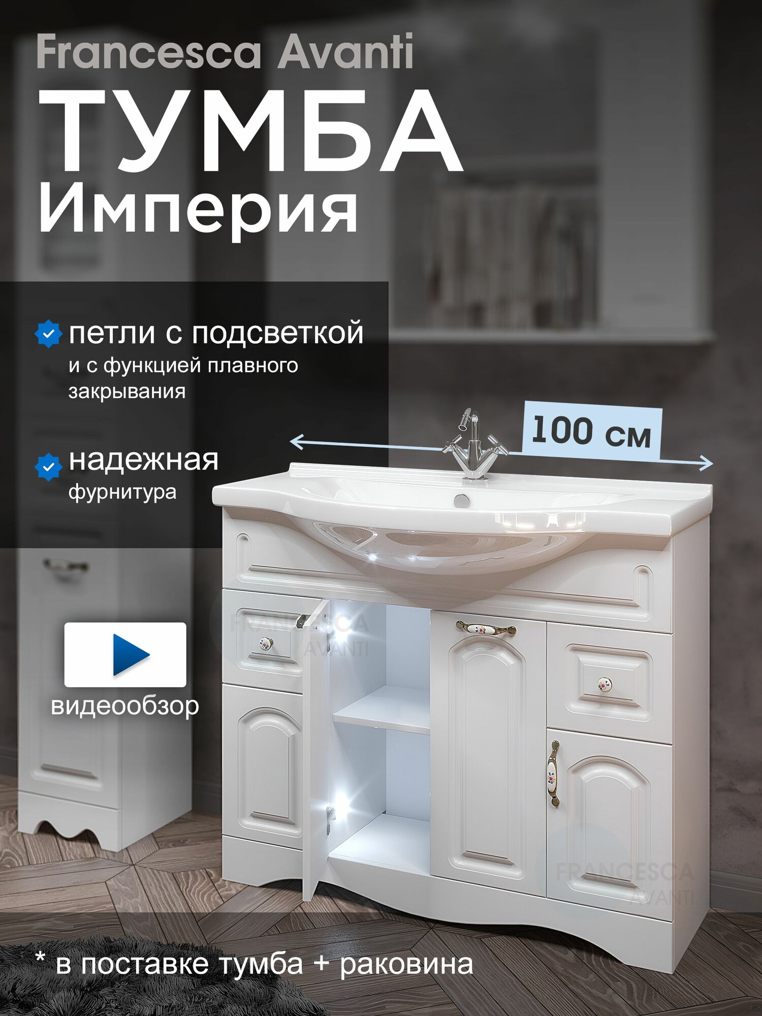 Тумба с раковиной для ванной Империя 100-2 белый с подсветкой (2ящ+4 дв, ум. Эльбрус 100): сравнение цен, характеристики, фото, актуальное наличие и цены.