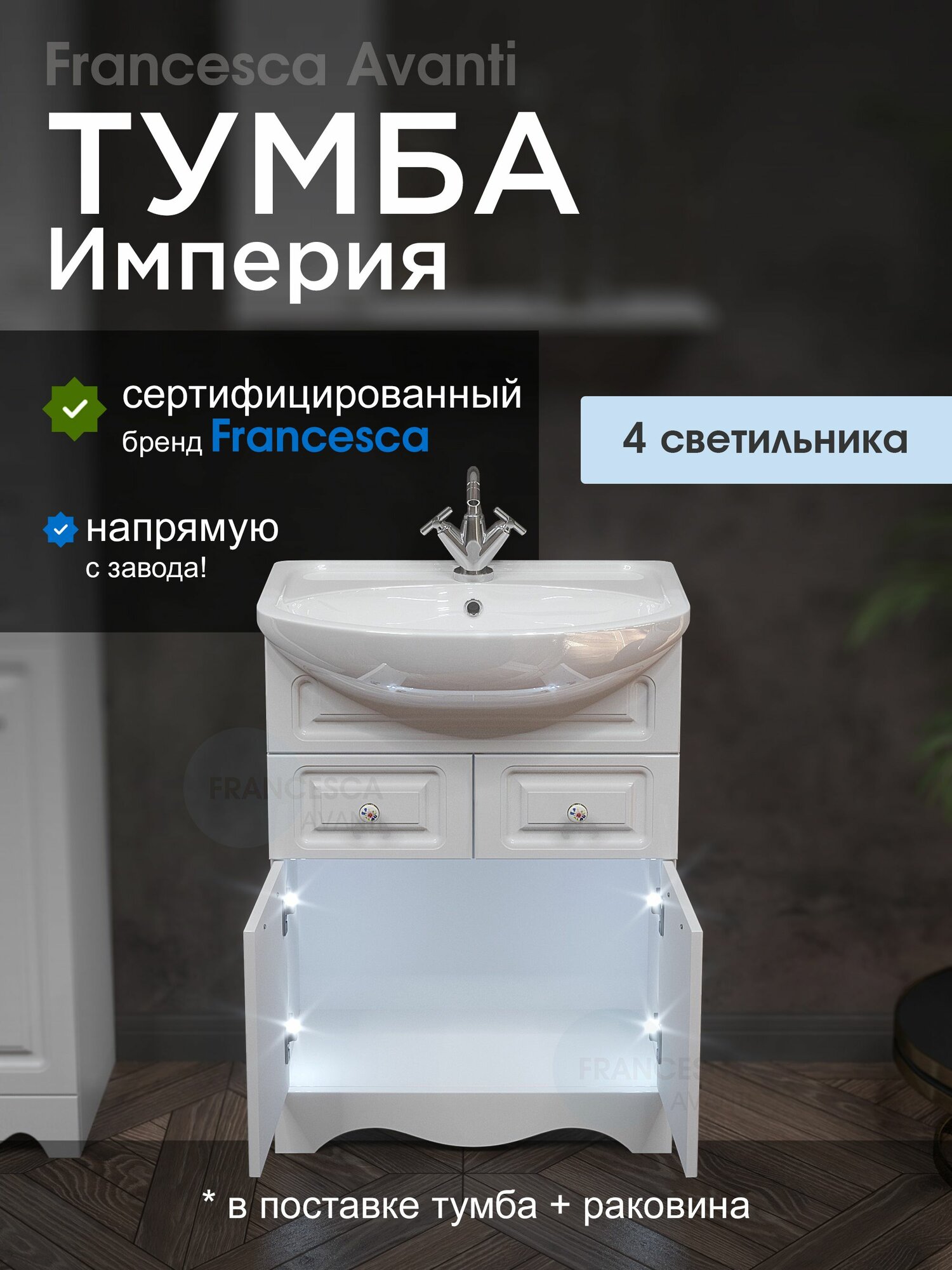 Тумба с раковиной для ванной Империя 60 белый, с подсветкой (2дв+2ящ, ум. Уют 60): сравнение цен, характеристики, фото, актуальное наличие и цены.